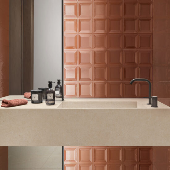 Diesbezüglich sind die Möglichkeiten einfach unbegrenzt: von koordinierten Oberflächen und neutralen Farbtönen für reine und minimalistische Optiken bis hin zu mutigen Details wie Akzentwände oder kreativen Phantasien entspringende Wandverkleidungen. Auch die Fliesenbeläge können demnach eine Hauptrolle bei der Raumgestaltung übernehmen, indem sie einem oft unterschätzten Bereich mehr Personalität und Dynamik verleihen.