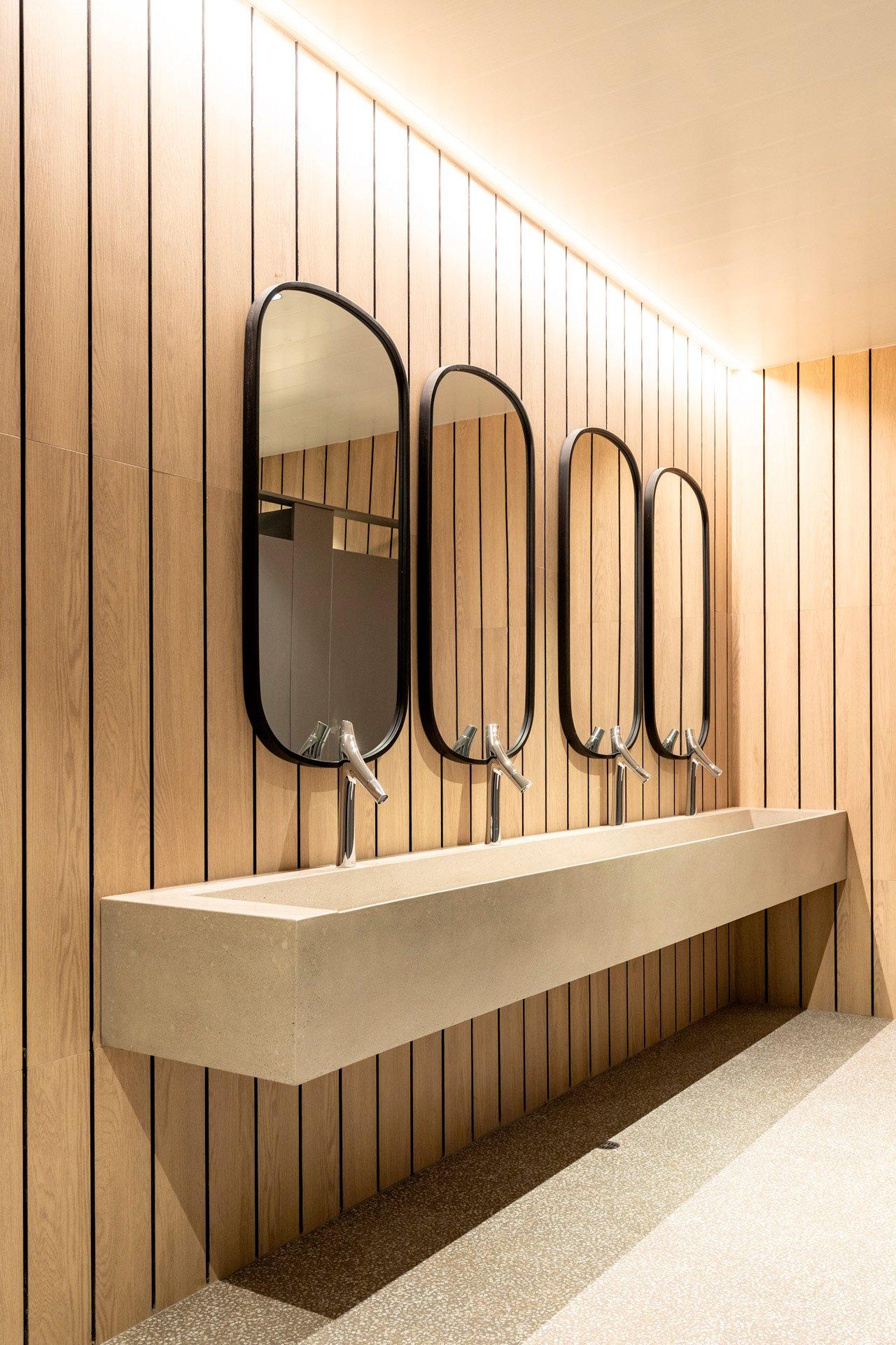 Wie die Innenarchitektin McLean weiter ausführt, waren „die Nachhaltigkeit der Keramikplatten und ihre technischen Leistungen ausschlaggebende Faktoren bei der Auswahl der Materialien. Das Waldklima und die Möglichkeit garantierter Wartungsfreundlichkeit waren Schlüsselelemente für die Verwendung von Oberflächen aus Feinsteinzeug; sie müssen mindestens zwei Jahrzehnte überdauern. Keramik ist ein Material, das unsere Sinne in besonderem Maße anspricht: Die hochwertige Optik ist häufig mit einer überraschend angenehmen Haptik verbunden.“
