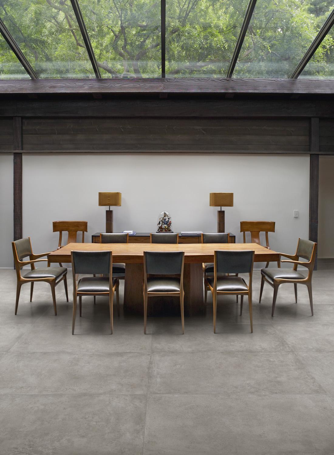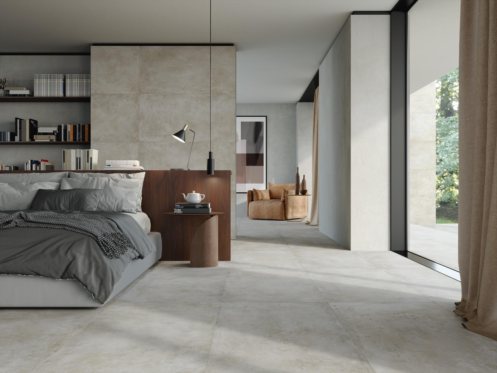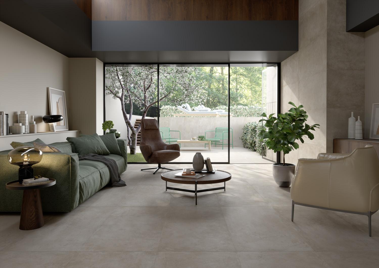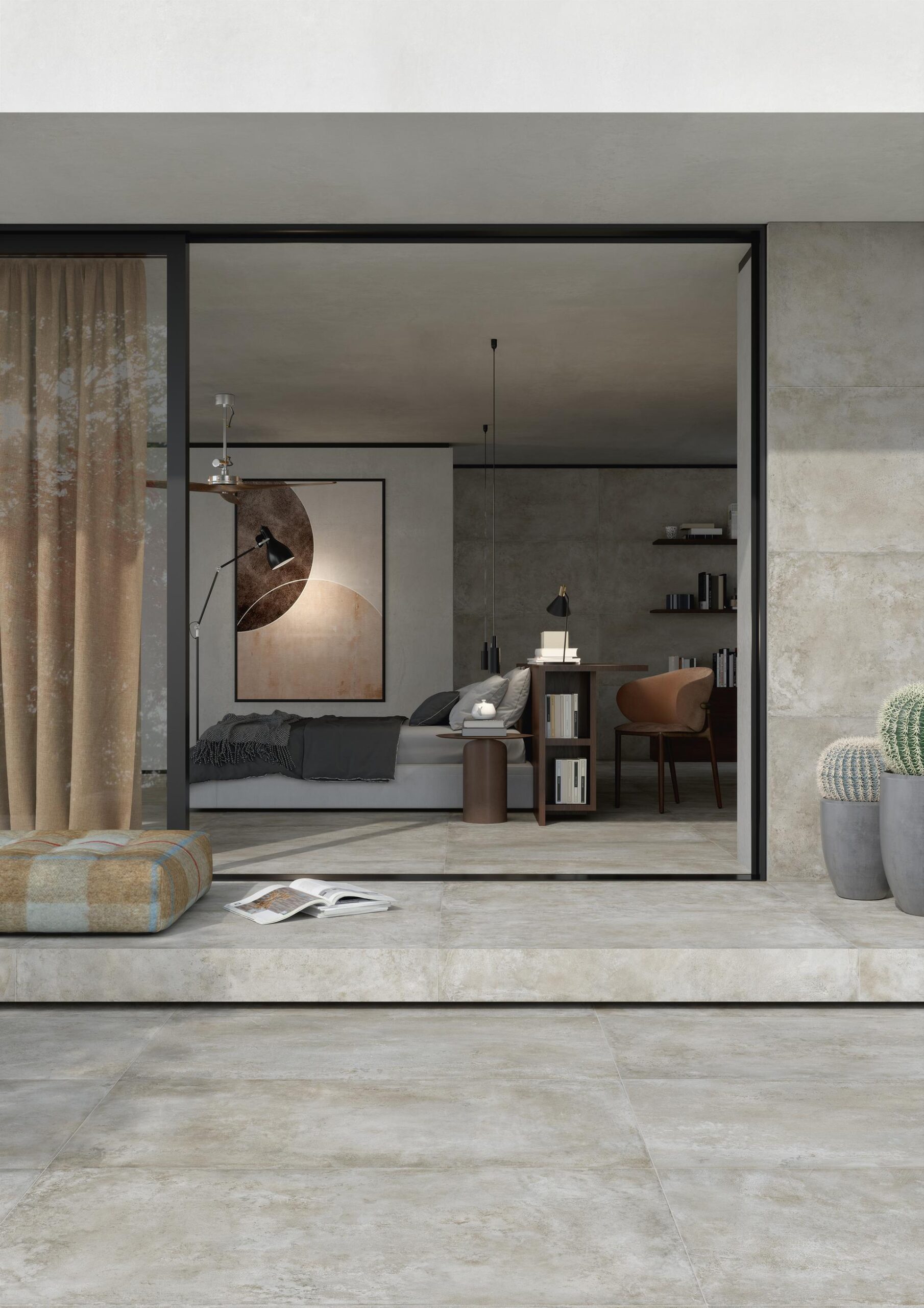 Industriebeton wird zum raumprägenden Planungsinstrument. Plaza steht als Bodenbelag in vier Farben (Blanco, Beige, Grey und Multicolor) mit blauen, ockerfarbenen und braunen Einsprenkelungen zur Wahl, die die Farben von Materialien oder Einrichtungsgeständen aufgreifen. Die Kollektion schafft eine klare Raumästhetik und ein urbanes Flair. Durch die reliefierte Oberfläche bietet sich Plaza auch im Außenbereich als sicherer Belag und somit auch für einheitliche Gestaltungskonzepte an. Die Großformate (60×120 cm, 60×60 cm und 30×60 cm) ermöglichen abwechslungsreiche Verlegemuster und Fugenbilder.