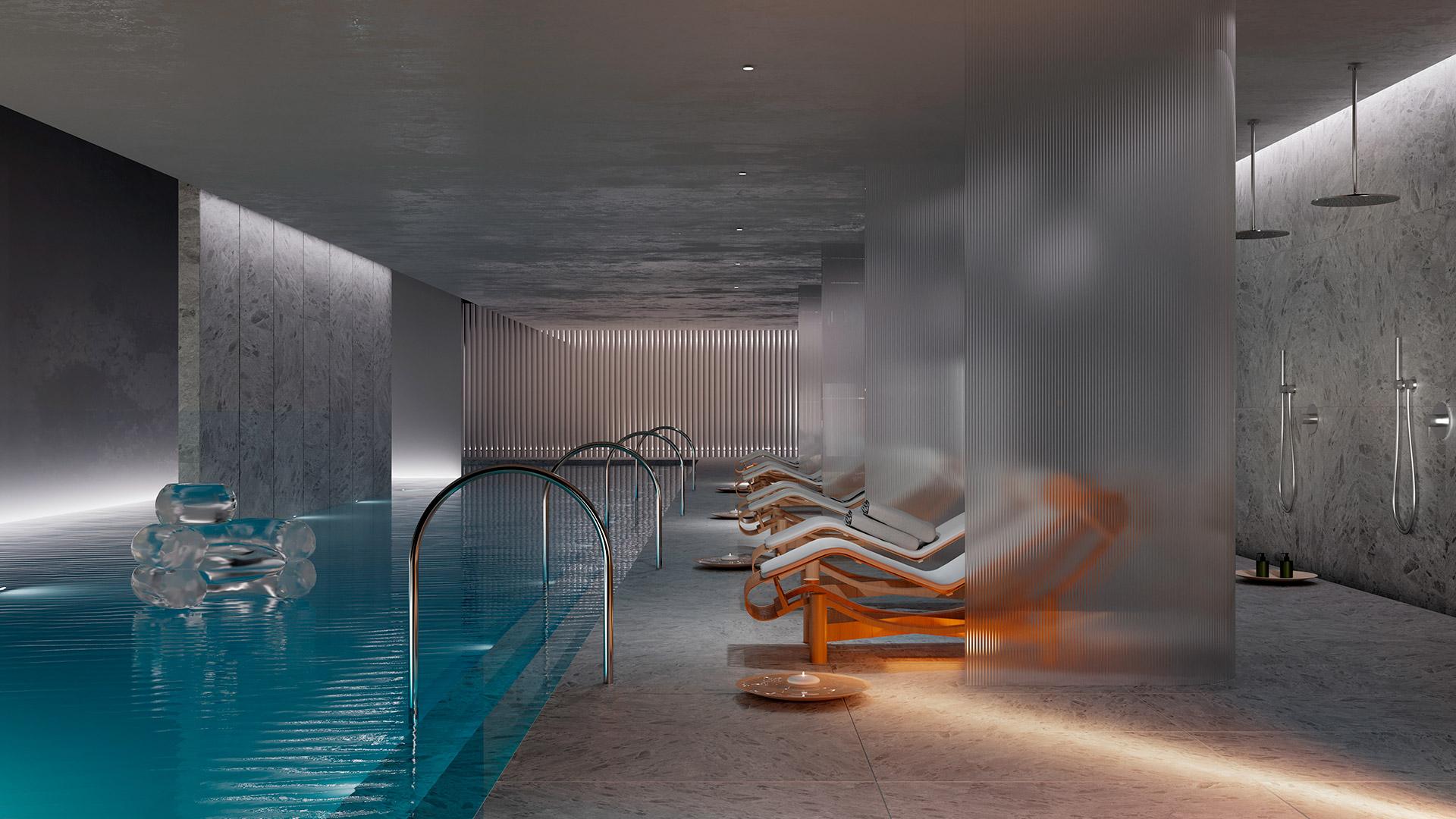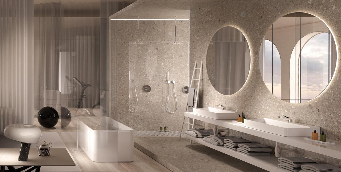 Die neue Kollektion Carácter kleidet den Wellnessbereich des IperHotels und die daran angrenzenden Räume. Aus Feinsteinzeug ist die für die Spa gewählte Version Mix Gris mit Kieselsteineinschlüssen von unterschiedlicher Form, Größe und Farbe, die eine einzigartige Optik entstehen lassen.
