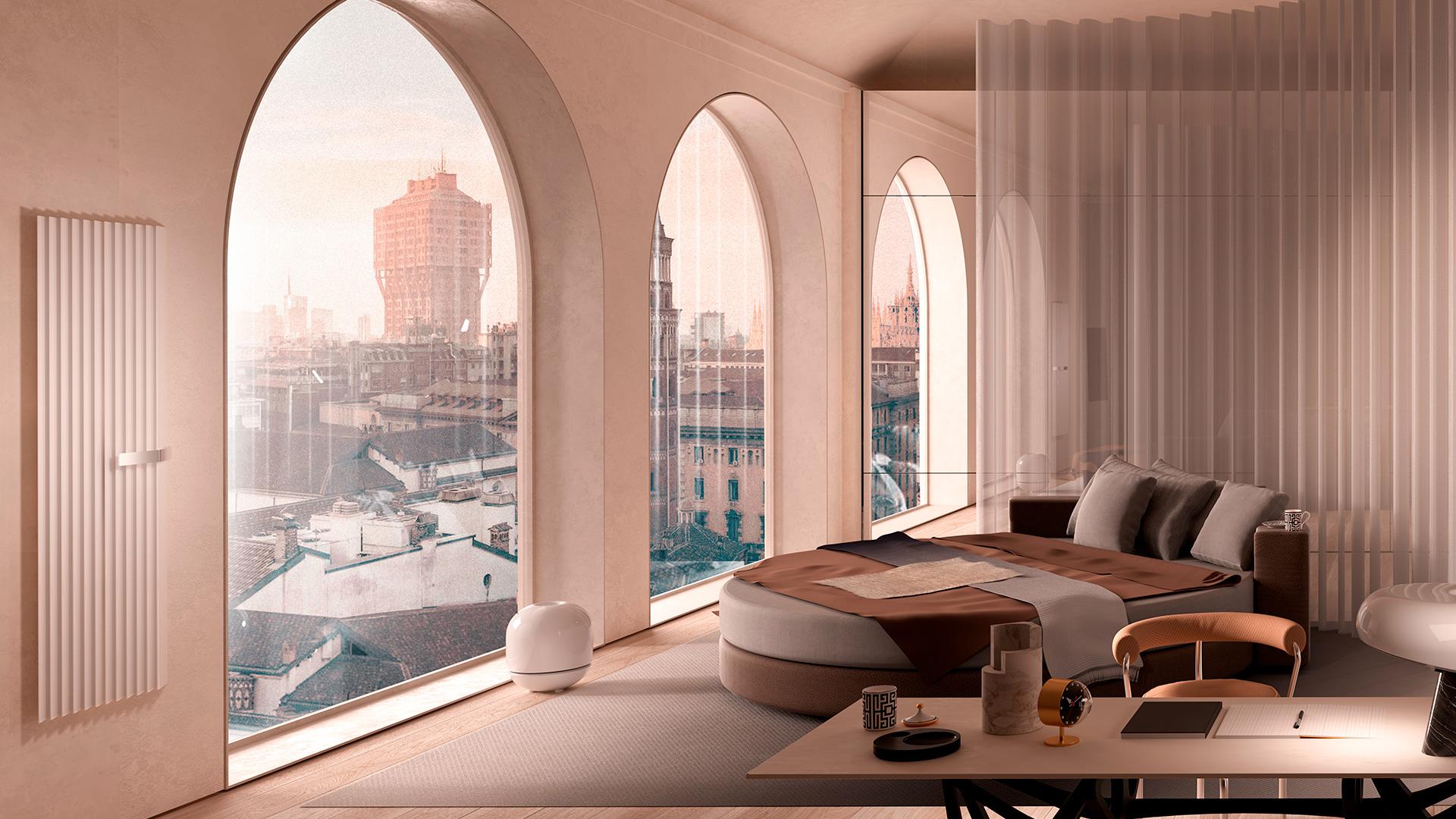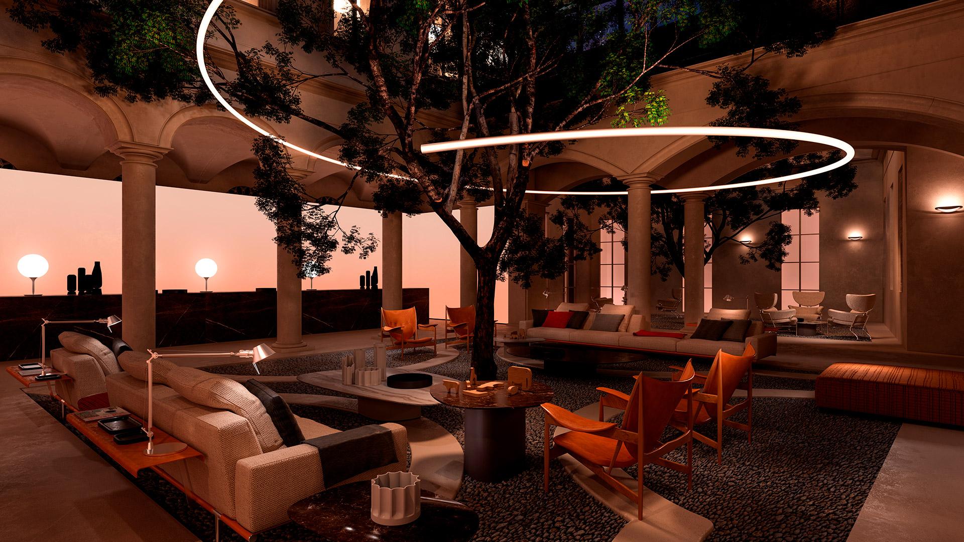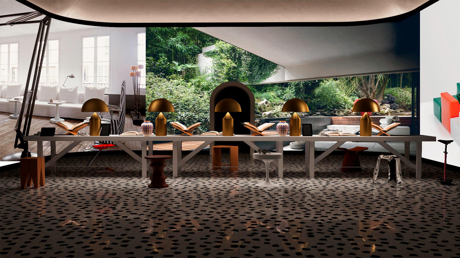 Im digitalen Raum von Palazzo Morando eröffnete Elle Decor die Installation IperHotel von Ludovica + Roberto Palomba. Dabei werden die Gemeinschaftsräume anhand einer virtuellen, den Architekten zufolge fast hyperrealen Narration neu definiert. In dieser erweiterten Dimension haben die Produkte von Marazzi einen idealen Rahmen gefunden, um ihre wahren Eigenschaften in einem digitalen Raum „wirkungsvoller“ zu präsentieren und mehr über ihre Leistungsmerkmale zu vermitteln.