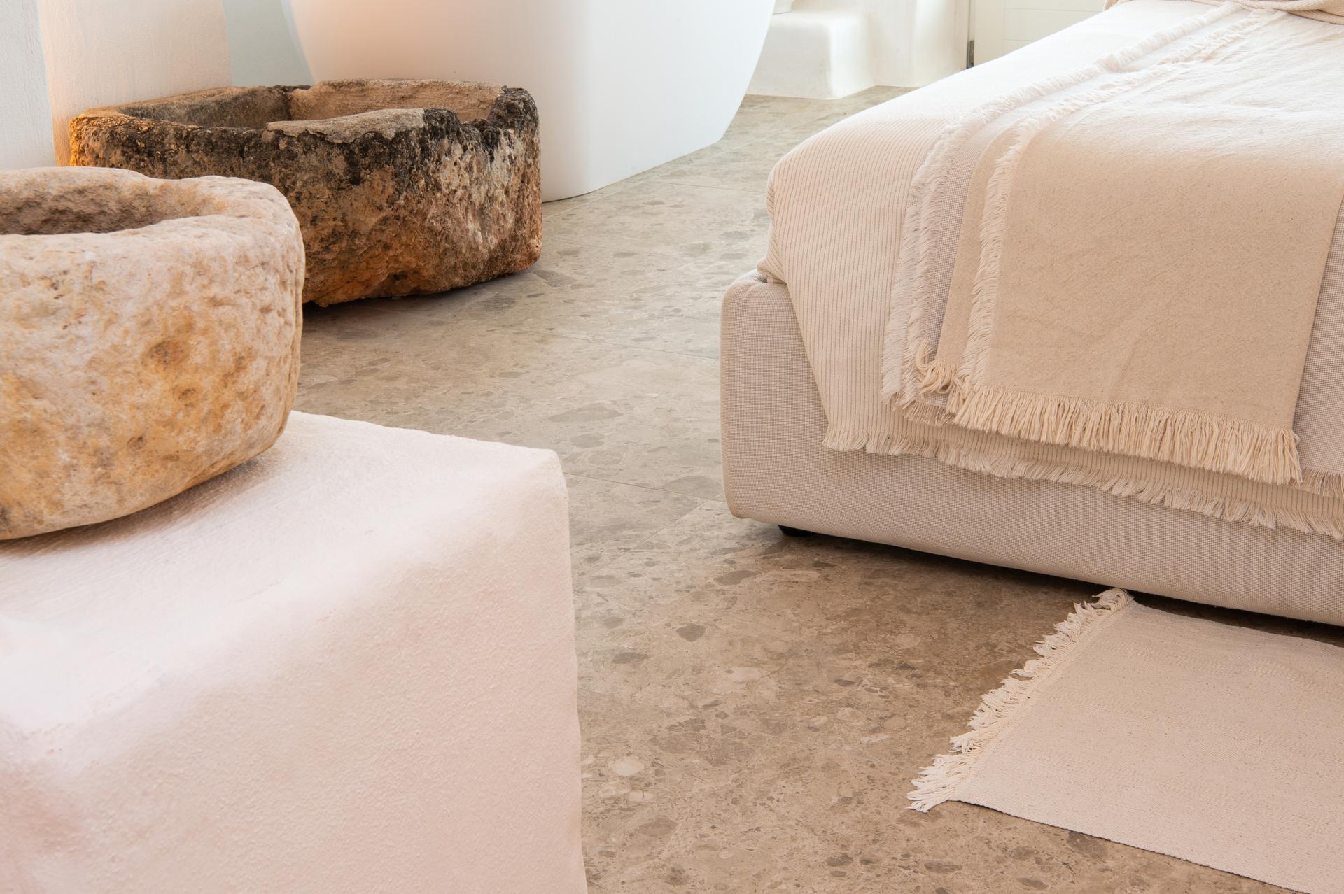 Bei der Gestaltung der Interieurs des Hotels Masseria Borgo Ritella in Fasano setzte Innenarchitekt Pino Brescia auf ein modernes Design. Materialien und Farben sind dem heimischen Naturstein nachempfunden und schaffen einen optischen Bezug zum Ort
