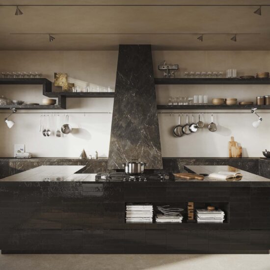 Wenn ich hingegen von Oberflächen spreche, fasziniert mich vor allem ihre sensorische Qualität. Persönlich fasziniert mich das sehr große Format und die hauchdünnen Stärken, die die italienische Technologie hervorgebracht hat und die die unterschiedlichsten Anwendungen ermöglichen: von den beeindruckendsten Fassaden von Gebäuden bis hin zu Waschbecken für Bäder und Küchen, selbstverständlich auch für Böden und Wände im Innen- und Außenbereich. Mich interessieren weichere Oberflächen, dreidimensionale Dekore und raffinierte Farben. Die Kombination dieser Eigenschaften ermöglicht es mir, die für mich passendsten Kreationen zu schaffen.