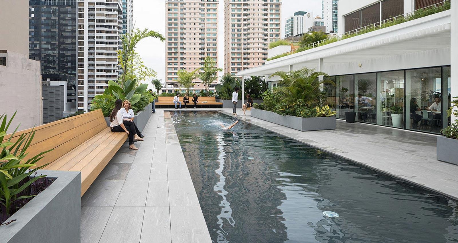 In diesem Zusammenhang drängt sich eine Frage förmlich auf: wer träumt nicht davon, in einem solchen Büro zu arbeiten, wo er zwischen einem Projekt und dem nächsten in einen Pool mit Blick auf die Hochhäuser von Panama-Stadt springen kann?