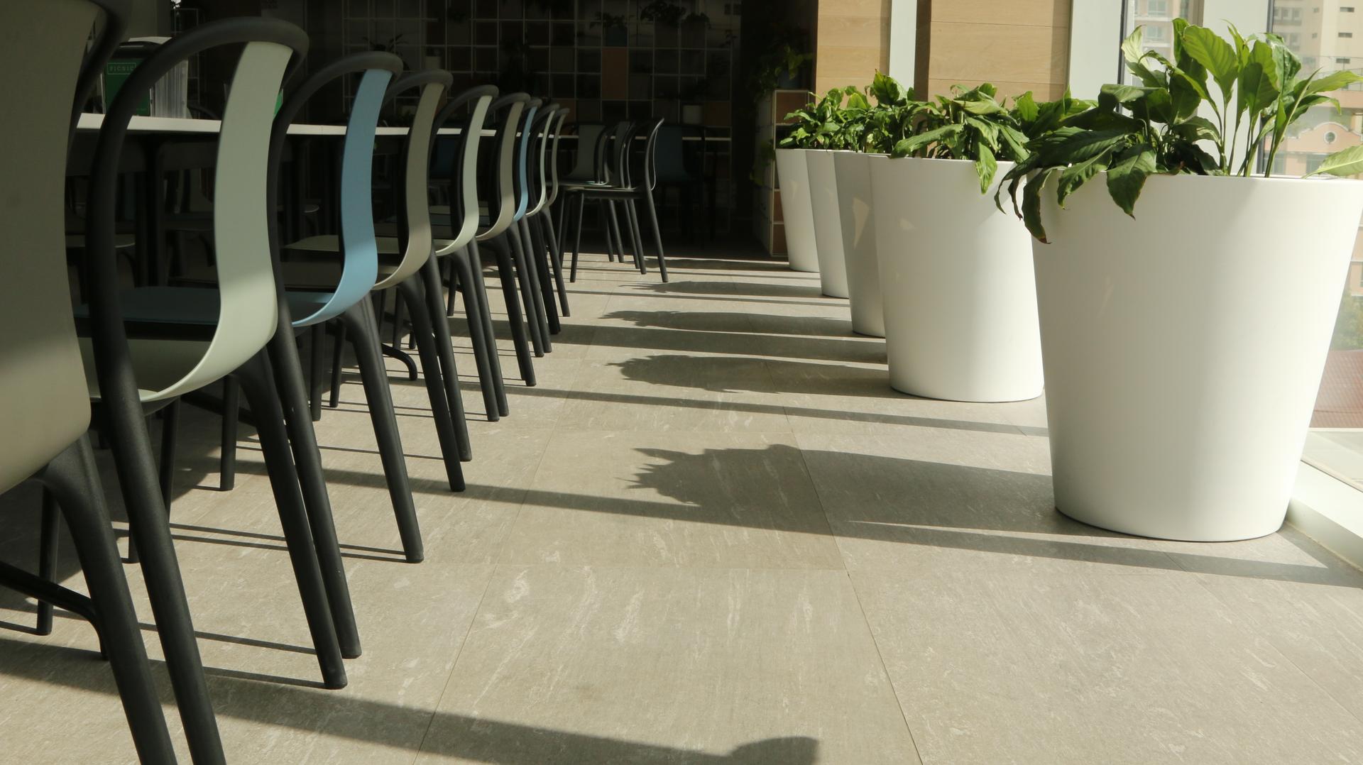 Aufgrund der zeitgemäßen, urbanen Ausstrahlung ist Mystone Pietra di Vals die ideale Kollektion für ein derartiges Objekt. Die Steinoptik des Feinsteinzeugs ist von den seltensten Quarziten inspiriert. Die verschiedenen Formate und Oberflächen eigenen sich für Beläge im Innen- wie im Außenbereich.