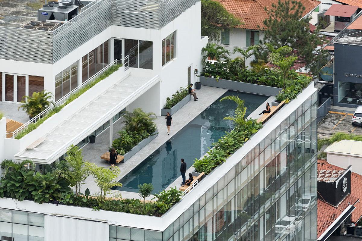 Das Gebäude bietet Arbeitsplätze für mehr als 255 Architekten und ist das Resultat der behutsamen Restaurierung eines siebenstöckigen Hotels im Zentrum von Panama-Stadt, nur wenige Schritte von der Panama Bay entfernt.