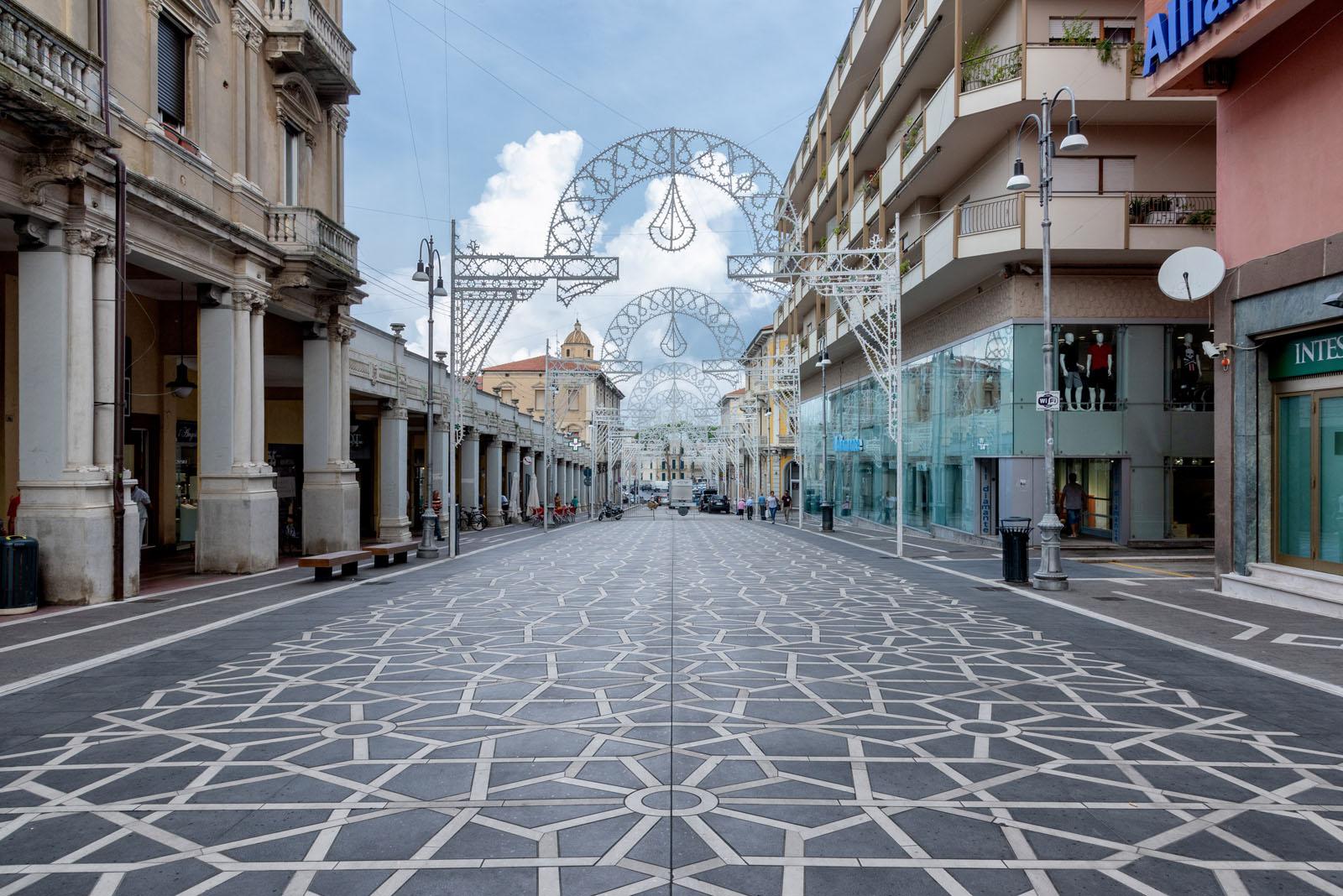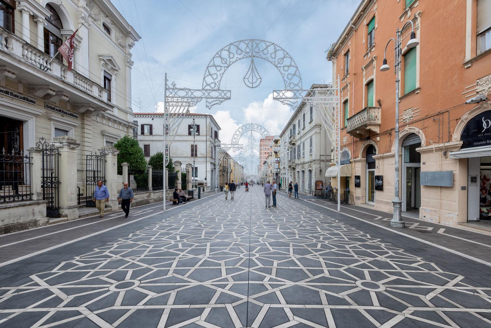 Ein das öffentliche System umgestaltendes Projekt, das Bürgern nutzbaren urbanen Raum mit einer eindrucksvollen horizontalen Szenografie im geometrischen Muster zur Verfügung stellt: Der neue Bodenbelag der Hauptstraße Corso Trento e Trieste aus Feinsteinzeug ist ein Gemeinschaftsprojekt der Stadt Lanciano, des Architekturbüros RicciSpaini Architetti Associati und der Fakultät für Architektur und Entwurf der Universität La Sapienza in Rom.