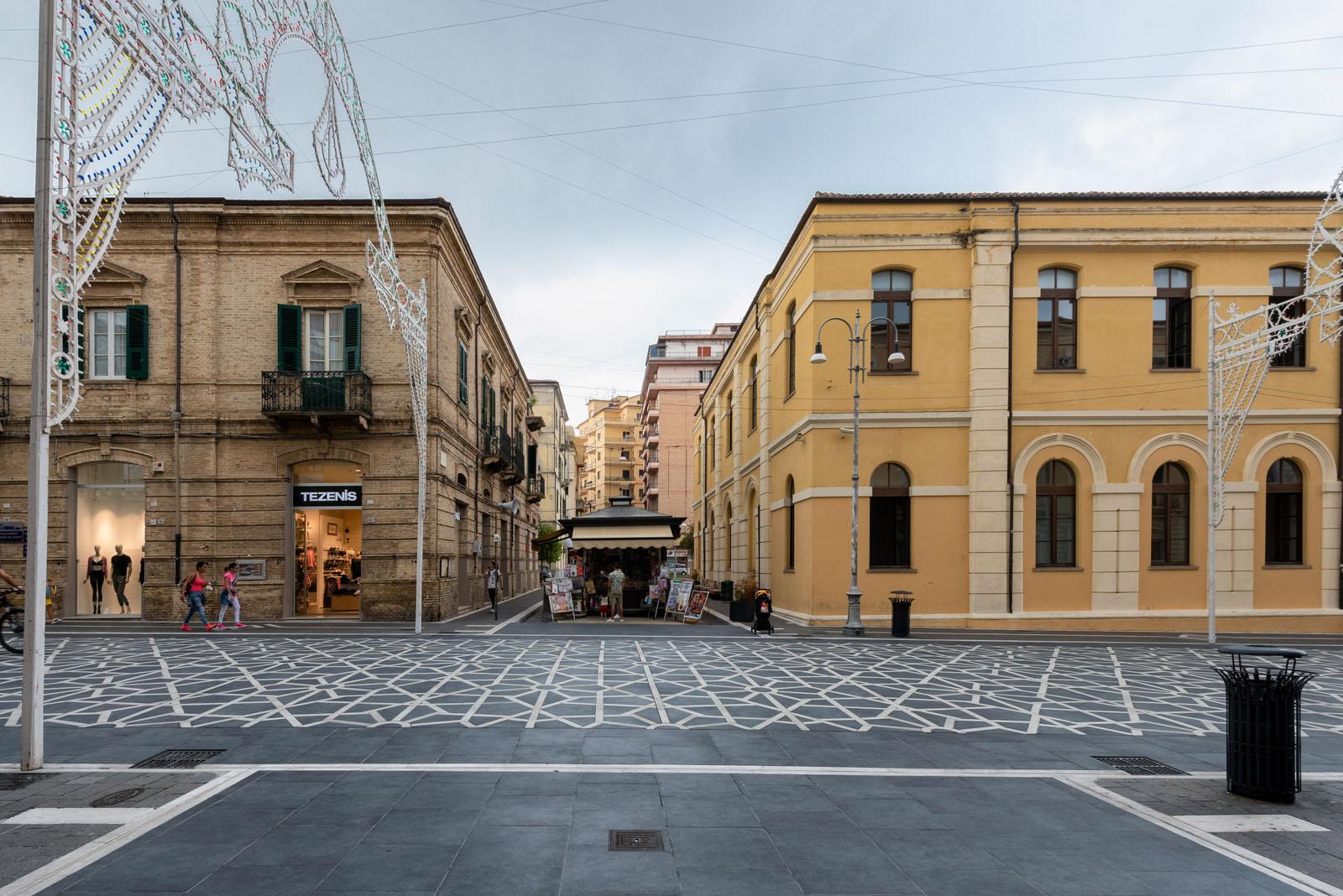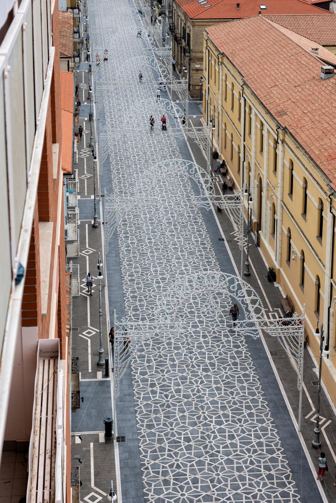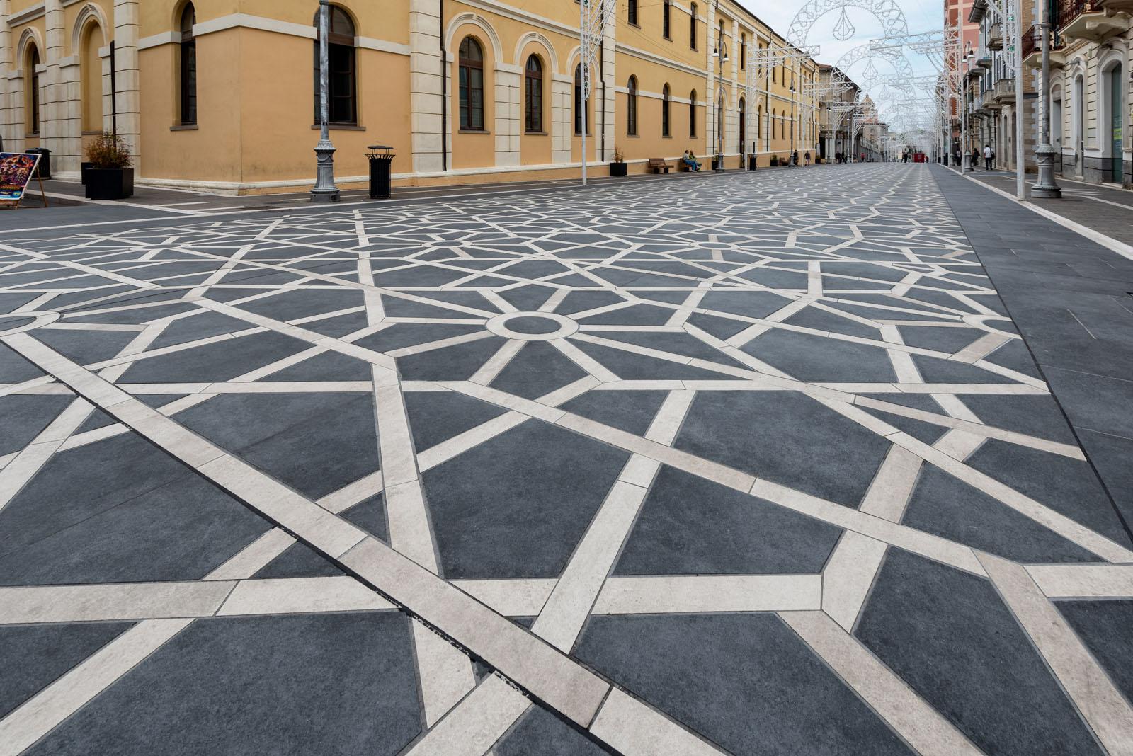 SistemN schenkt der Stadtmitte von Lanciano in den Abruzzen mit einem neuen Bodenbelag im eindrucksvollen geometrischen Muster eine völlig neue Optik