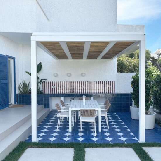 Das Gleichgewicht zwischen gestalterischer Flexibilität und Ausdrucksfreiheit eröffnet im Außenbereich eine neuartige Möglichkeit der ästhetischen Individualisierung. Dies zeigt sich exemplarisch bei der Villa Golem, einer eleganten Residenz, eingebettet ins Grün und mit Blick auf einen der schönsten Strände der albanischen Küste, wo Architektur durch dekorative Oberflächen mit starker visueller Wirkung mit der Natur in Dialog tritt.