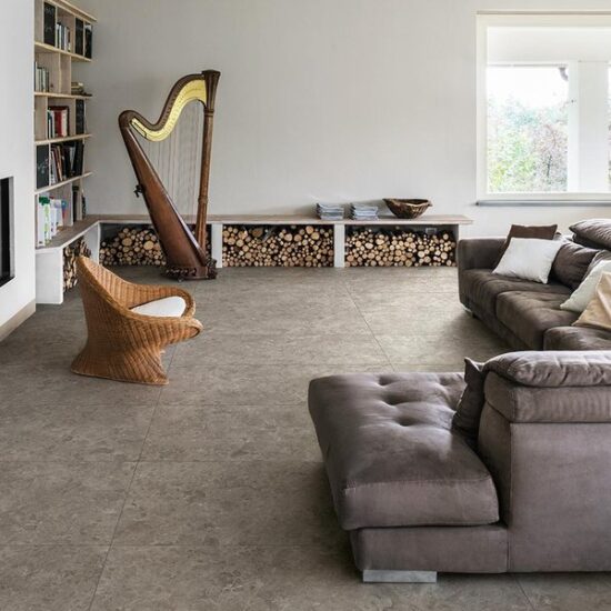 Materialoptiken mit Feinsteinzeug in Natursteinoptik für Daniel & Mayer