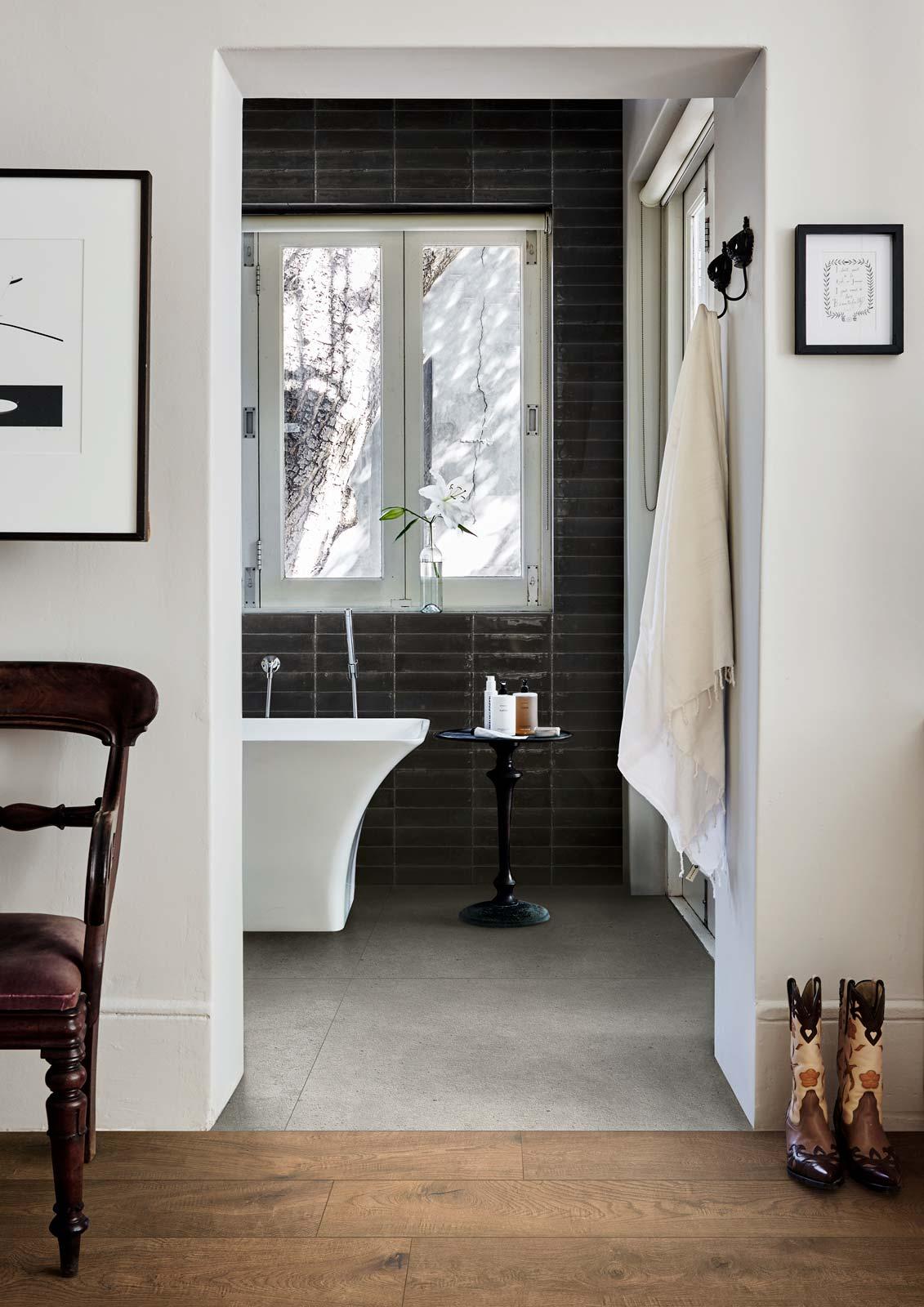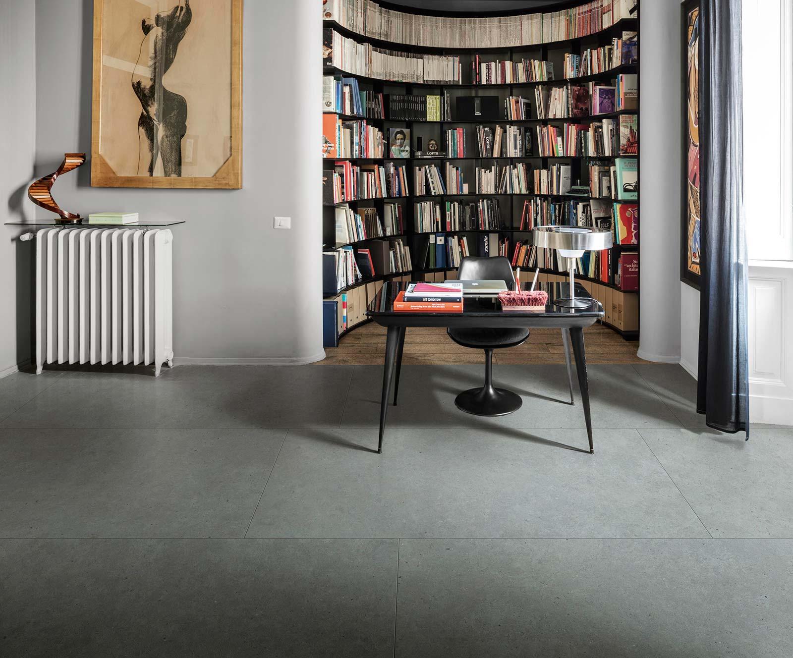 Das Feinsteinzeug Mystone Moon ist unverkennbar vom Gestein Moongrey inspiriert, das in Spanien, in der Gegend von San Vicente abgebaut wird und dessen Textur eine vage Ähnlichkeit mit der Mondoberfläche hat. Den grauen Untergrund beleben gleichmäßig verteilte fossile Einschlüsse, die für eine erlesene, minimalistische Optik sorgen. So fügt sich Mystone Moon ebenso stimmig in rustikale, behagliche Interieurs – in Kombination mit Holz – wie in modernere, lineare Raumwelten – gepaart mit Flächenbelägen in Betonoptik.