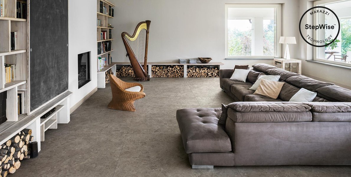 Die neuen Fliesen aus StepWise™ Feinsteinzeug von Marazzi erfahren überdies ganzflächig eine mechanische Bearbeitung, die ihnen eine weiche Haptik und zugleich einen hohen Gleitreibungskoeffizienten (DCOF, ANSI American National Standard) verleiht. Dieser Koeffizient misst die Rutschfestigkeit der Fliesen bei nasser Oberfläche. Für Innenräume beträgt der diesbezügliche Standardwert 0,42.
