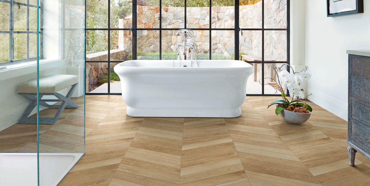 Das neue Feinsteinzeug Treverksoul von Marazzi besticht mit einer wertigen, von alten Parkettböden inspirierten Holzoptik, die zeitgemäß überarbeitet wurde.