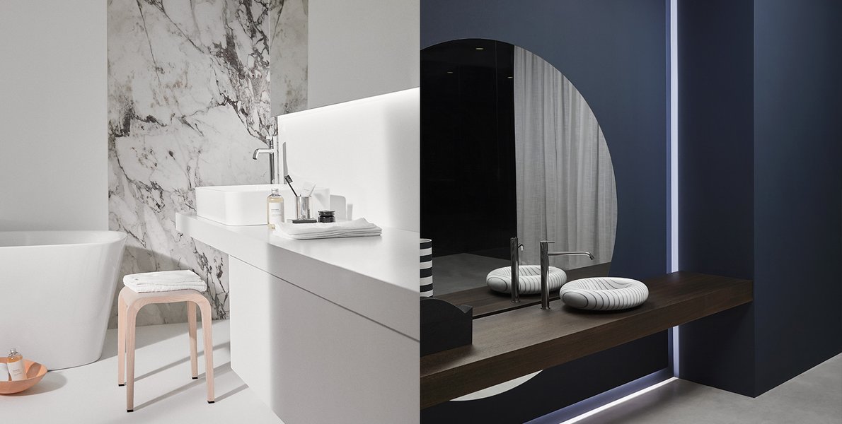 Planer im Vergleich: Die Planer von Palomba Serafini Associati erzählen uns, wie stark sich das Bad vom rein funktionell geprägten Raum zum emotionsgeprägten Ort gewandelt hat, während für gumdesign der Akzent auf einer Rückbesinnung auf die Körperpflege und der zunehmenden Aufmerksamkeit für Schönheit und Umweltverträglichkeit liegt.