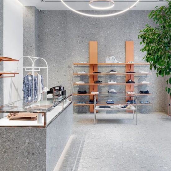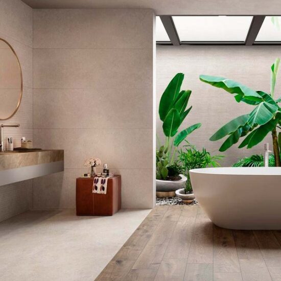 Materialoptiken mit Feinsteinzeug in Natursteinoptik für Daniel & Mayer