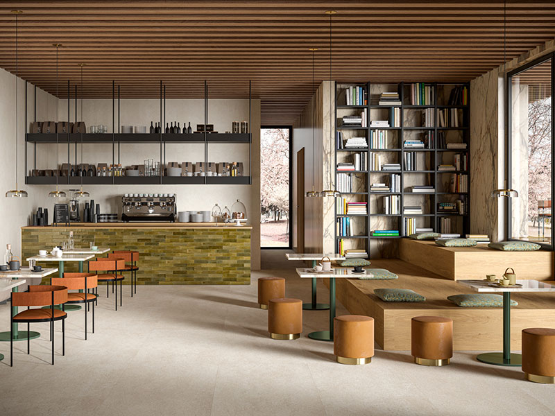 Im Wohnzimmer und in den Wohnbereichen können Fliesen mit Majolika-Effekt verwendet werden, um dekorative Wände zu schaffen, die die Aufmerksamkeit auf sich ziehen. Auch Böden können dank Lösungen, die Ästhetik und Funktionalität vereinen, zu Hauptdarstellern werden.