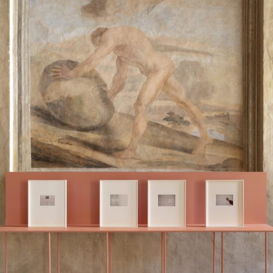 Anlässlich der Ausstellung Metamorfuoco. Unter dem Licht Tintorettos, die in den Gallerie Estensi in Modena stattfand, arbeiteten wir mit dem britischen Künstler Simon Starling an der Realisierung einer immersiven Installation zusammen. Das Werk setzte den Gemäldezyklus Tintorettos in Dialog mit Holzschnitten und zeitgenössischen Arbeiten aus den Archiven der Gallerie Estensi und lud das Publikum ein, über die Auswirkungen des Klimawandels nachzudenken. Ein integraler Bestandteil der Installation war der spezielle Boden aus Feinsteinzeug, entworfen von Starling und von Marazzi hergestellt, konzipiert als „Leinwand“, auf der der Künstler natürliche Elemente in Beziehung zu den Figuren des Gemäldes aus dem 16. Jahrhundert setzte. Rund sechzig unterschiedliche Dekorationen bildeten ein einzigartiges Mosaik, das einen kreisförmigen Raum definierte, der die Besucher empfängt und sie durch eine Umgebung führt, die im Licht von Tintorettos über ihnen schwebendem Meisterwerk erlebt wird.