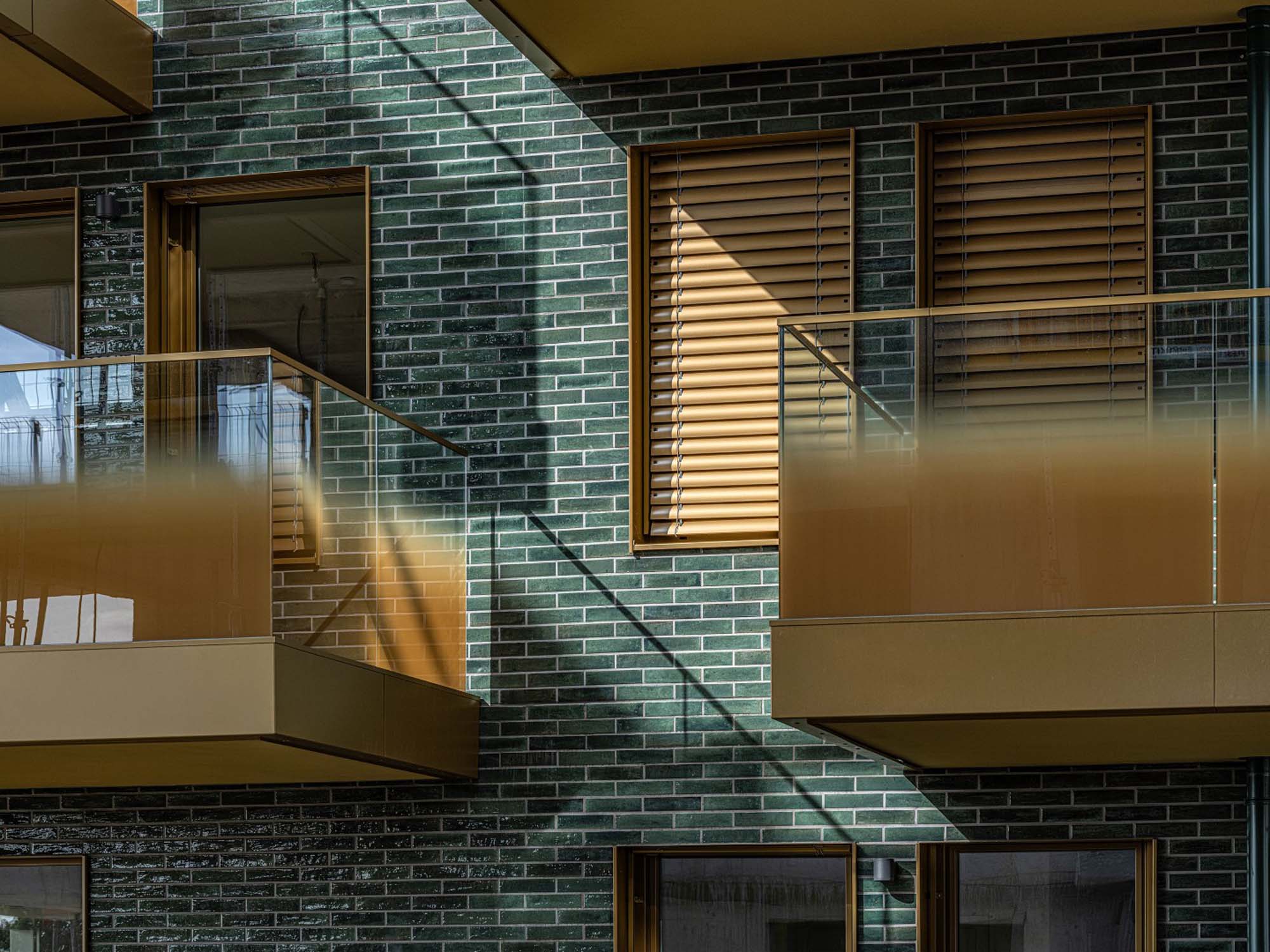 Auf diesem Fassadensystem wurde die Außenbekleidung aus dem Feinsteinzeug Crogiolo Lume in der Farbe Green installiert. Die Fliesen entsprachen vollständig dem Wunsch der Architekten und Landschaftsplaner in Hinsicht auf sinnlich ansprechende Bereiche und emotionale Dimension, was bei der Materialauswahl eine Schlüsselrolle spielte.