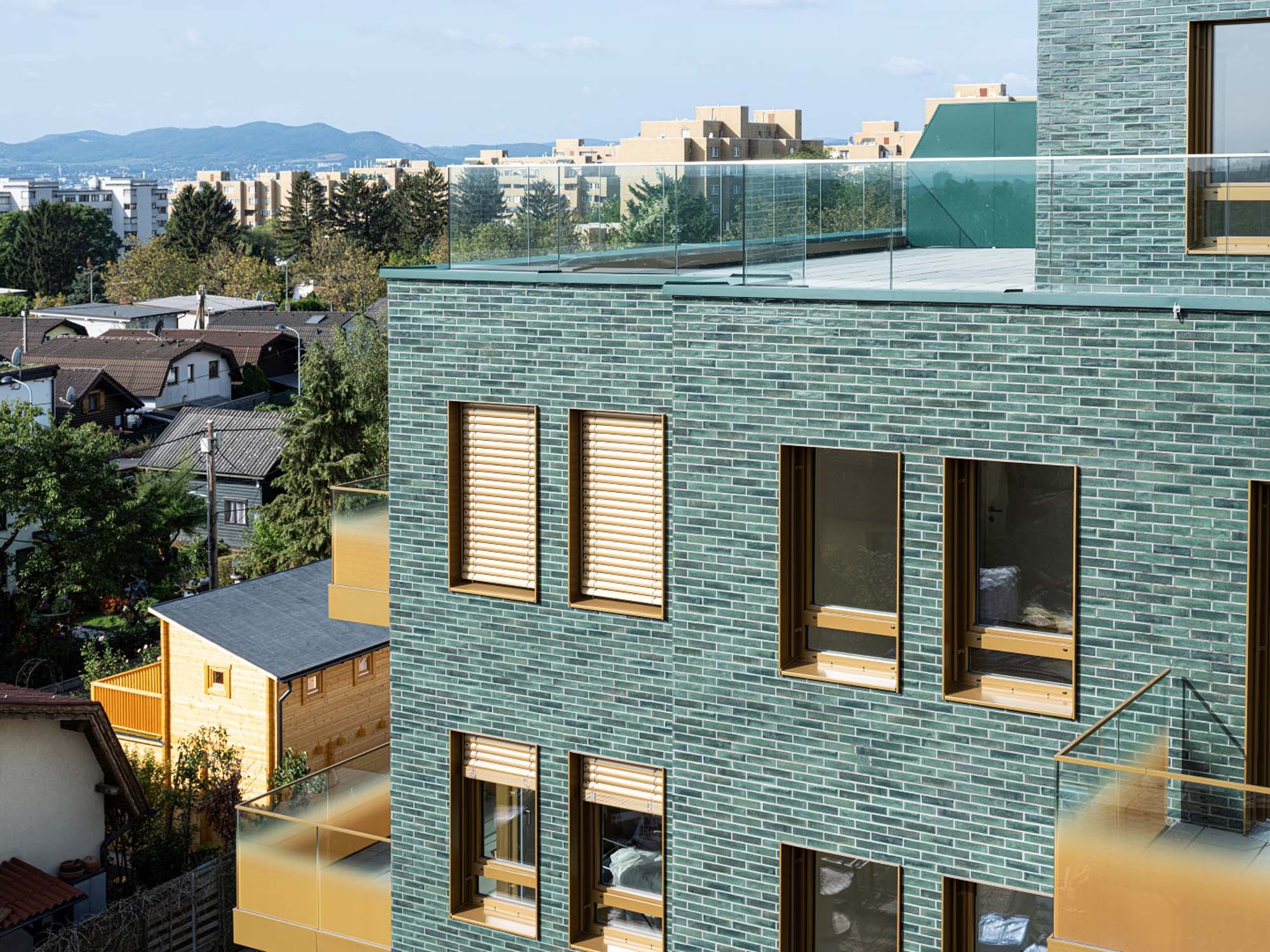 WohnungsbauCrogiolo Lume in der Farbe Green für Gebäudehüllen bei einem Stadterneuerungsprojekt in Wien. Projektteam und Landschaftsplaner feilten besonders akribisch an der stofflichen und sinnlichen Dimension der Wohngebäude, die mit hohem Innenraumkomfort und niedriger Umweltbelastung überzeugen.