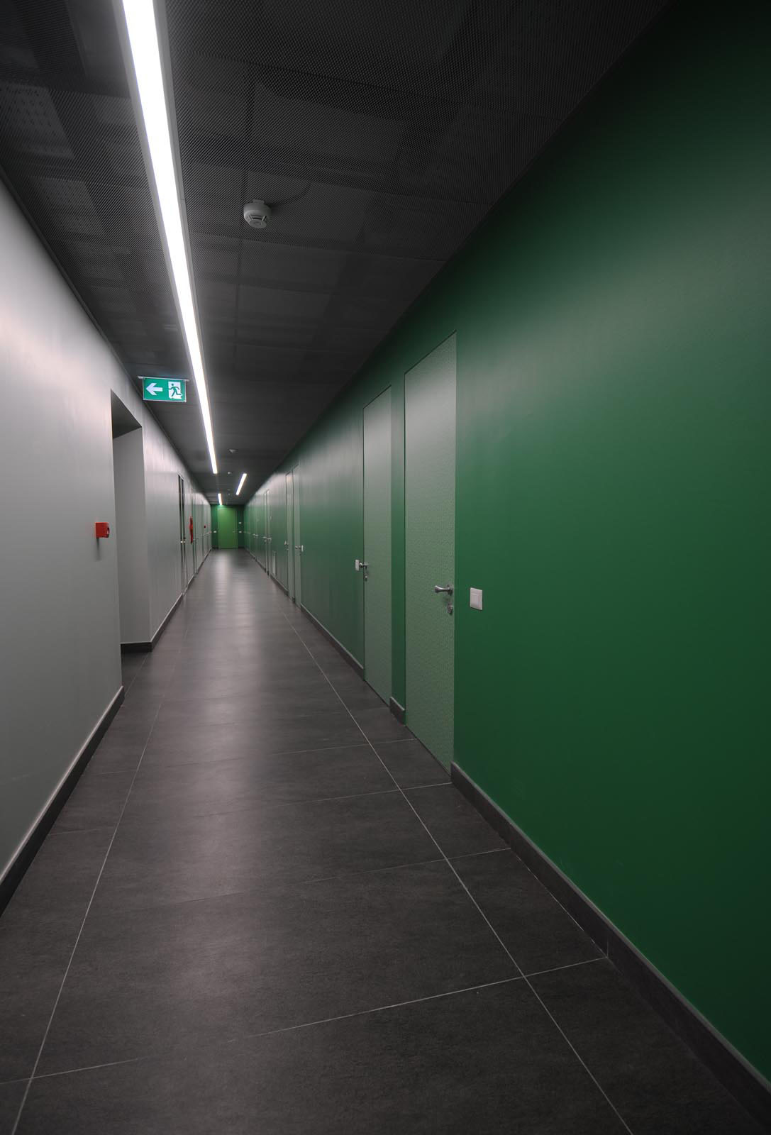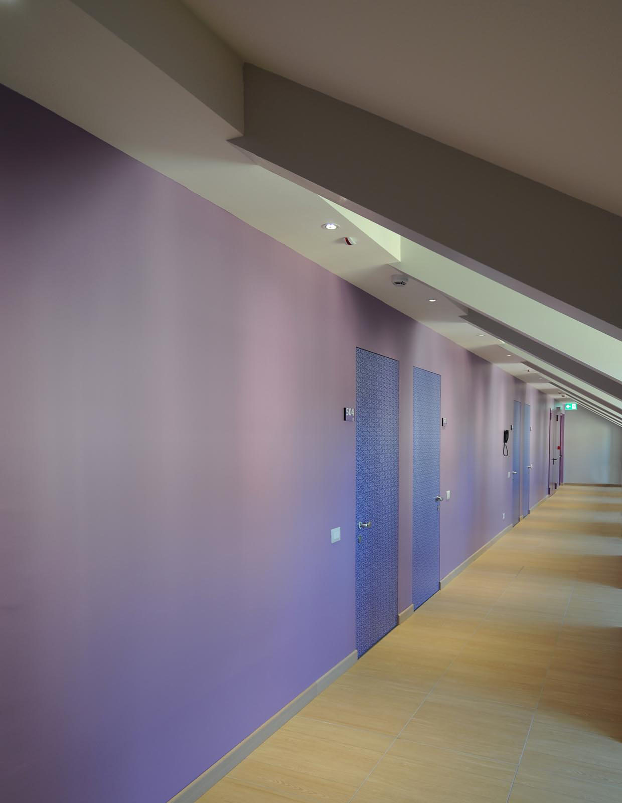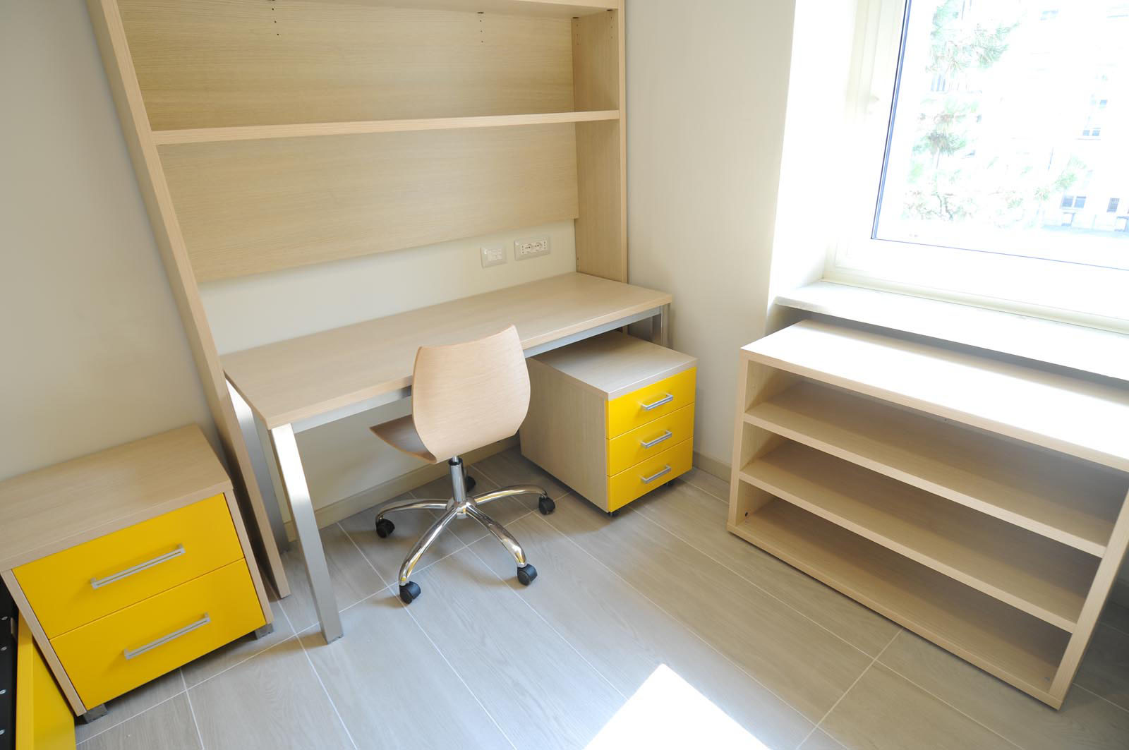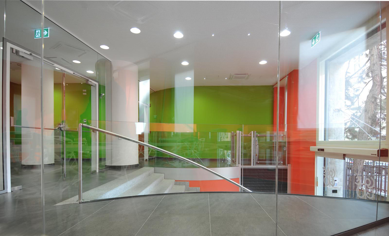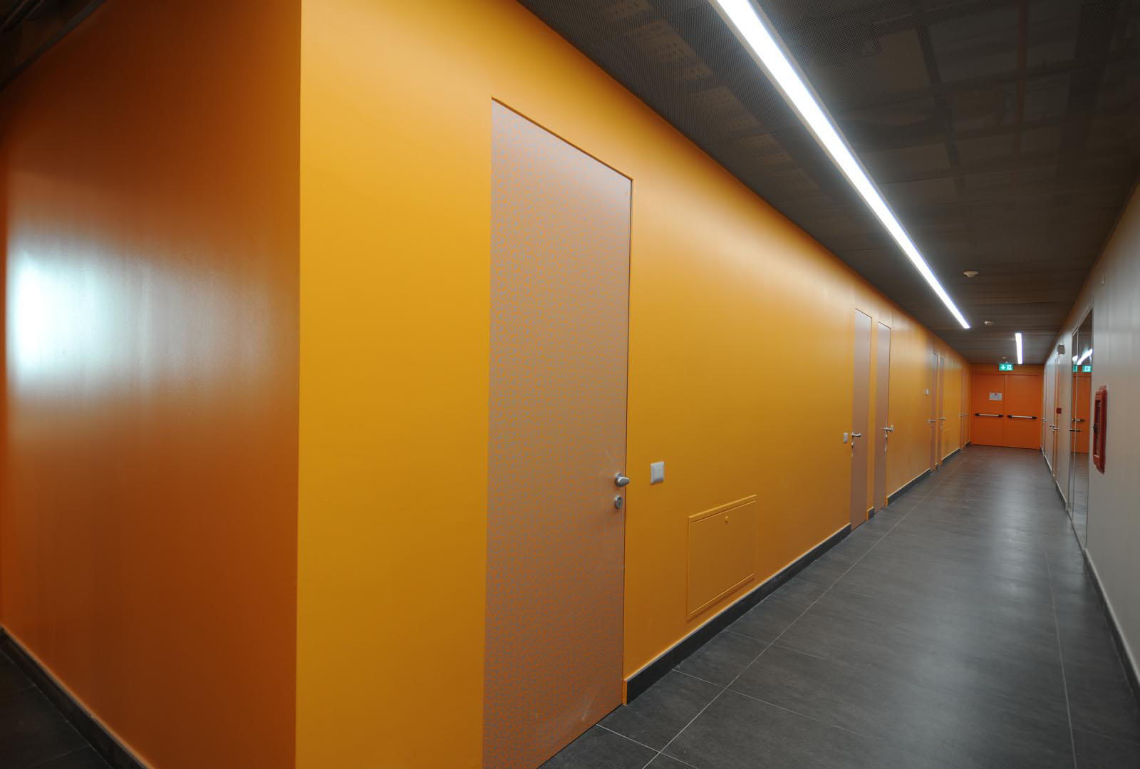 Die wichtigsten Gestaltungselemente des Projektes sind Farbe und Transparenz: Die Wände sind bis zur vollen Höhe aus Glas und jedes Zimmer hat eine andere Farbe. Drei verschiedene Feinsteinzeugkollektionen von Marazzi dienen als verbindendes Element für die unterschiedlichen Ambiente: die beiden Steinoptik-Kollektionen Stonehenge und Soho - letztere erhielt 2010 die ehrenvolle Erwähnung bei der Verleihung des Compasso d‘Oro des italienischen Fachverbands für Industriedesign ADI - und die Holzoptik-Kollektion Treverk. Die in der Farbnuance Cappuccino und im Format 30x120 cm ausgewählte Kollektion Treverk knüpft an die dunkleren Farbtöne der beiden Steinoptik-Kollektionen Soho Antracite 60x120 cm und Stonehenge Black 30x60 cm an, mit denen es in allen Räumen des Wohnheims einen harmonischen Einklang bildet.