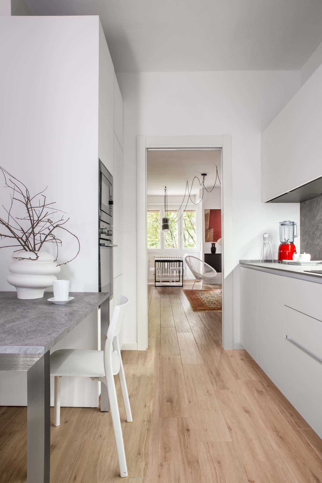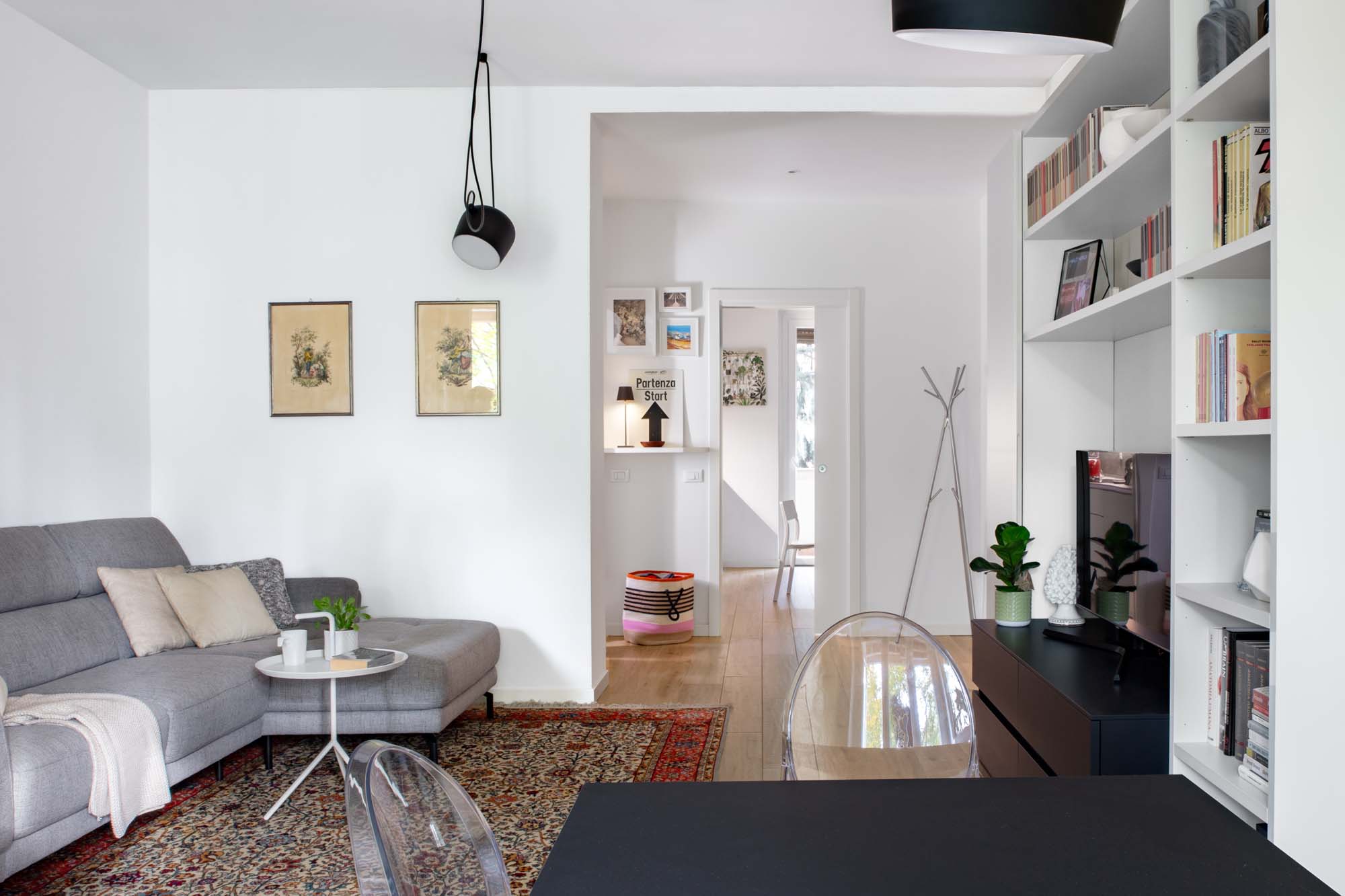 „Ein ‚Schlüsselfertig‘-Service, den das Studio auch für diese Stadtwohnung realisiert hat“, bestätigte die Architektin Bianchi. „Das Studio hat an einer Renovierung gearbeitet, die die Räume optimiert, dabei jedoch die ursprüngliche Weite bewahrt und die Länge der Räume angepasst hat, um die Funktionalität zu verbessern und die Aufstellung von geräumigen Möbelstücken in jedem Raum zu ermöglichen.“