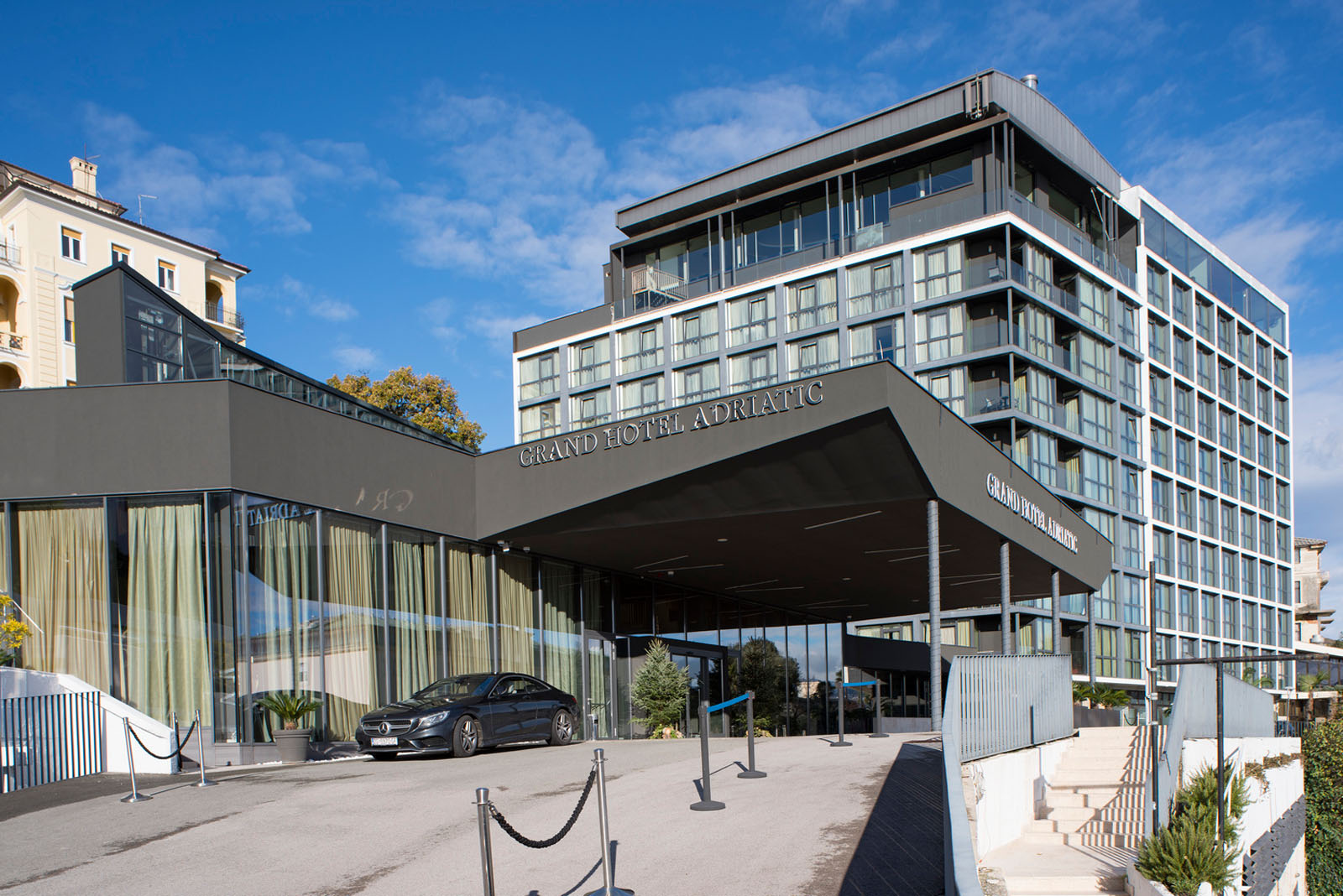 In Opatija, einem bekannten Touristenort an der Westküste Istriens in Kroatien befindet sich das Grand Hotel Adriatic direkt an der Kvarner Bucht und vor dem Hintergrund des Gebirgsmassivs Učka. Vom modernen, achtstöckigen Bau an der Strandpromenade mit herrlichem Ausblick sind es nur wenige Schritte bis zum Meer. Das Hotel hat 317 elegant eingerichtete und mit allem Komfort ausgestattete Zimmer und Suiten. Jedes Ambiente wurde bis ins kleinste Detail mit ausgesprochener Sorgfalt gestaltet, mit besonderem Augenmerk auf Optik und Funktionalität der verwendeten Materialien.