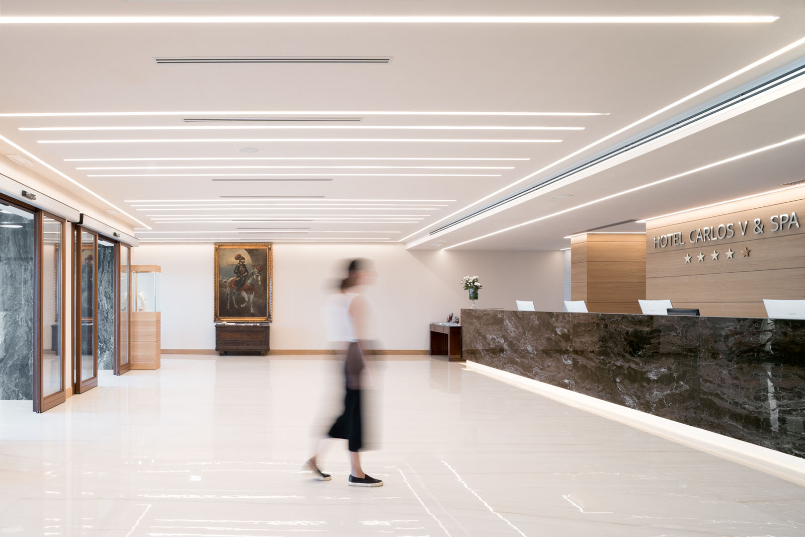 Die Hotelsanierung nach einem Projekt des Architekten Antonio Delogu umfasste die vollständige Neugestaltung der Lobby, aller WC-Räume im Erdgeschoss und des Aufzugbereichs.