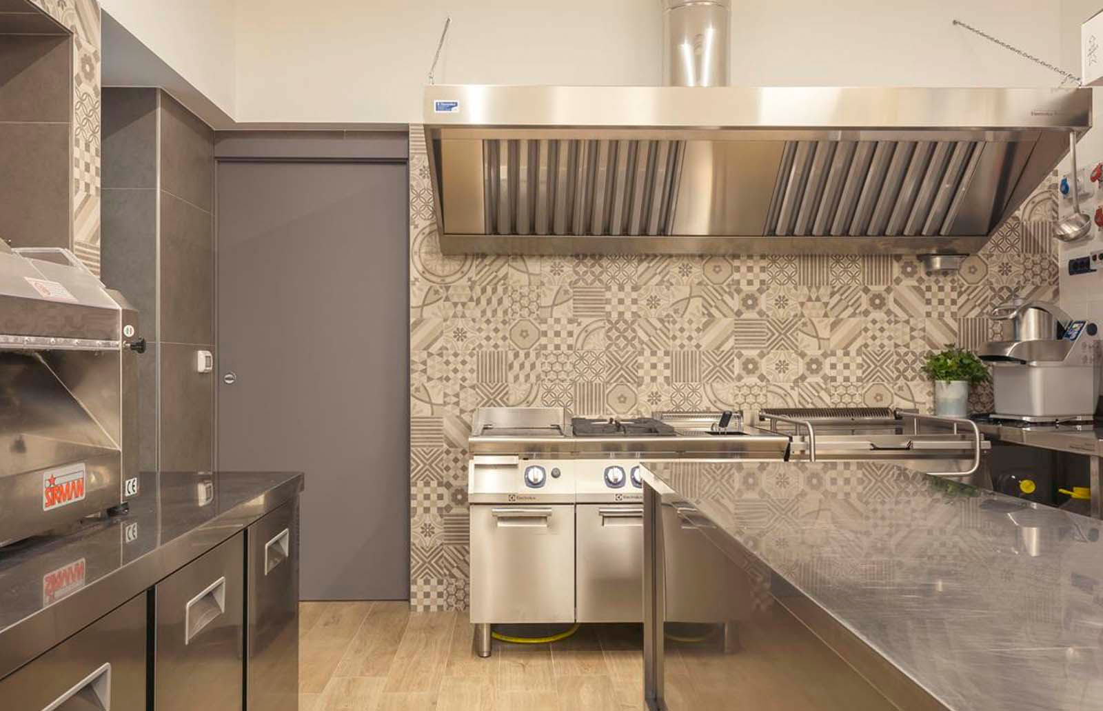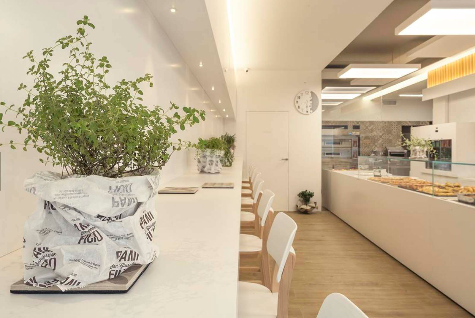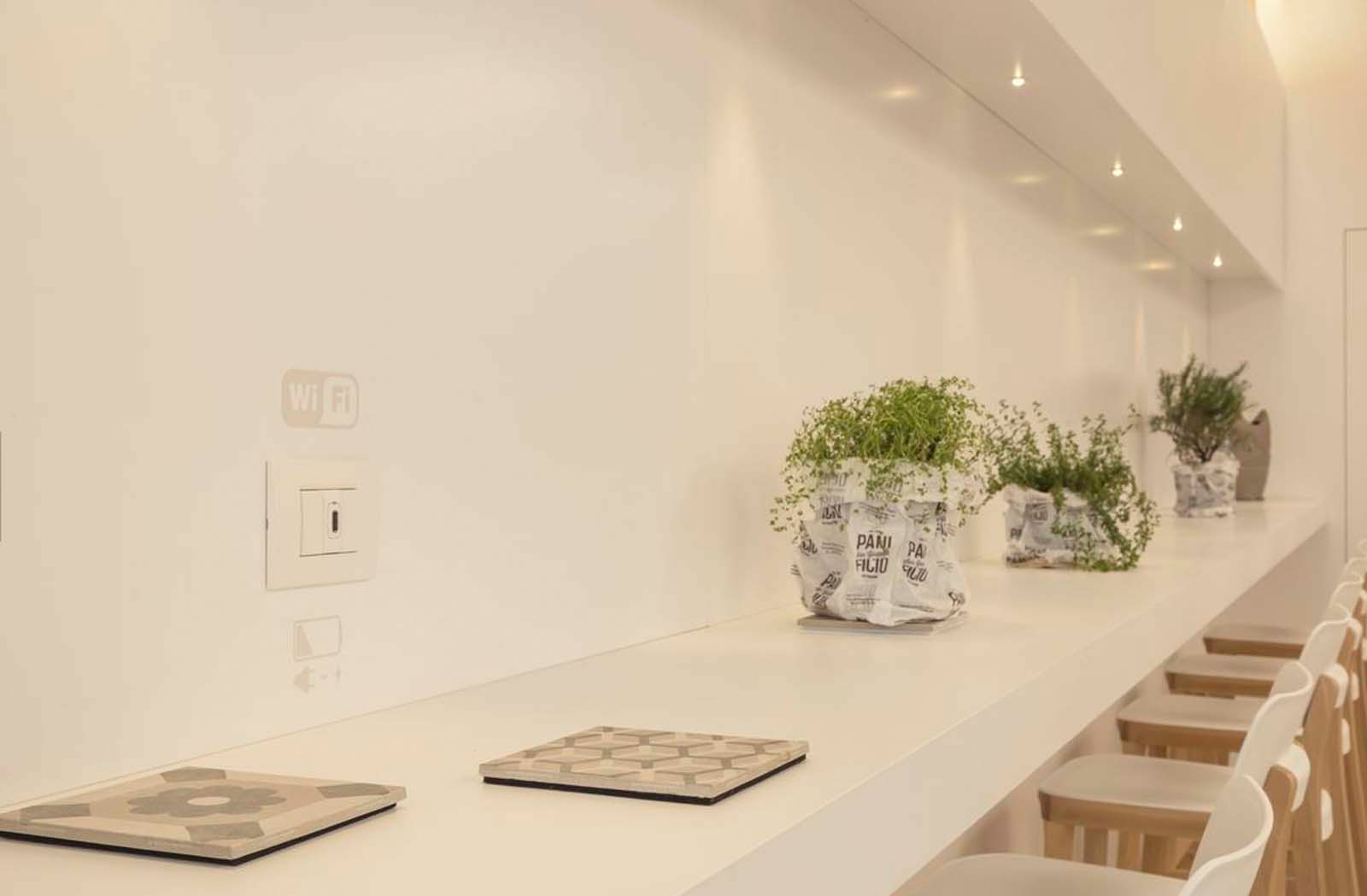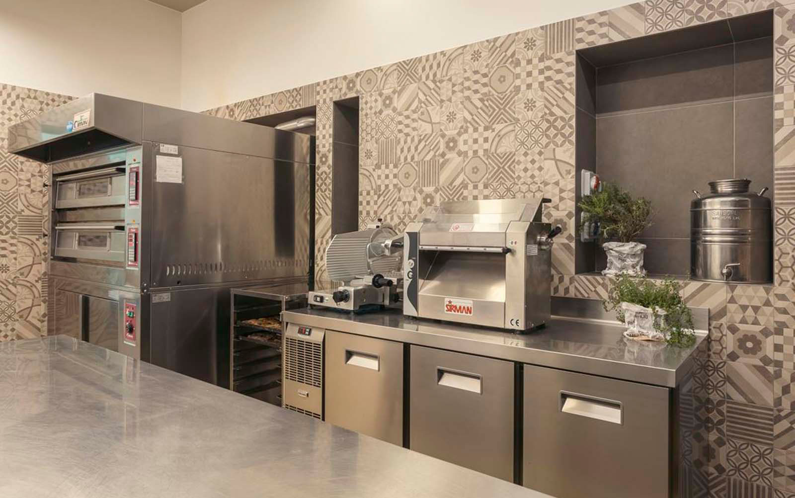In der Stadt Ragusa befindet sich das Panificio San Giuseppe, das an der Tradition der guten alten Bäckereien inspiriert ist. Das 2016 vom Büro DGFArchitetti entworfene Konzept basiert auf der präzisen Vorstellung, dass ein heller, geschickt dekorierter Raum den Rahmen zur Verkaufstheke und den Produkten, die im Mittelpunkt der Inszenierung stehen, bilden soll. Auch die Wahl der Materialien ist darauf ausgerichtet, aus diesem Laden ein „Schmuckkästchen“ zu machen, in dem der Geschmack und die Atmosphäre von früher zu neuem Leben erweckt werden. Beim Bodenbelag entschied man sich für das Feinsteinzeug Treverkever in Holzoptik von Marazzi in der Farbvariante Sand, das die Schönheit und warme Ausstrahlung das natürlichen Vorbilds mit der Beständigkeit und den überragenden Leistungsmerkmalen des Feinsteinzeugs in perfekter Synthese vereint. Für die Gestaltung der Wände fiel die Wahl auf die dekorierten Zementfliesen im Format 15x15 cm der Kollektion Block von Marazzi, die den traditionellen Fliesen aus gepresstem Zement nachempfunden sind. Sie setzen die Backstube, den klassischen Ort für das kreative Bäckerhandwerk, effektvoll in Szene. Die Fliesen dieser Kollektion wurden auch zur Verkleidung einiger Möbel und als reizende Untersetzer oder kleine Teller verwendet.