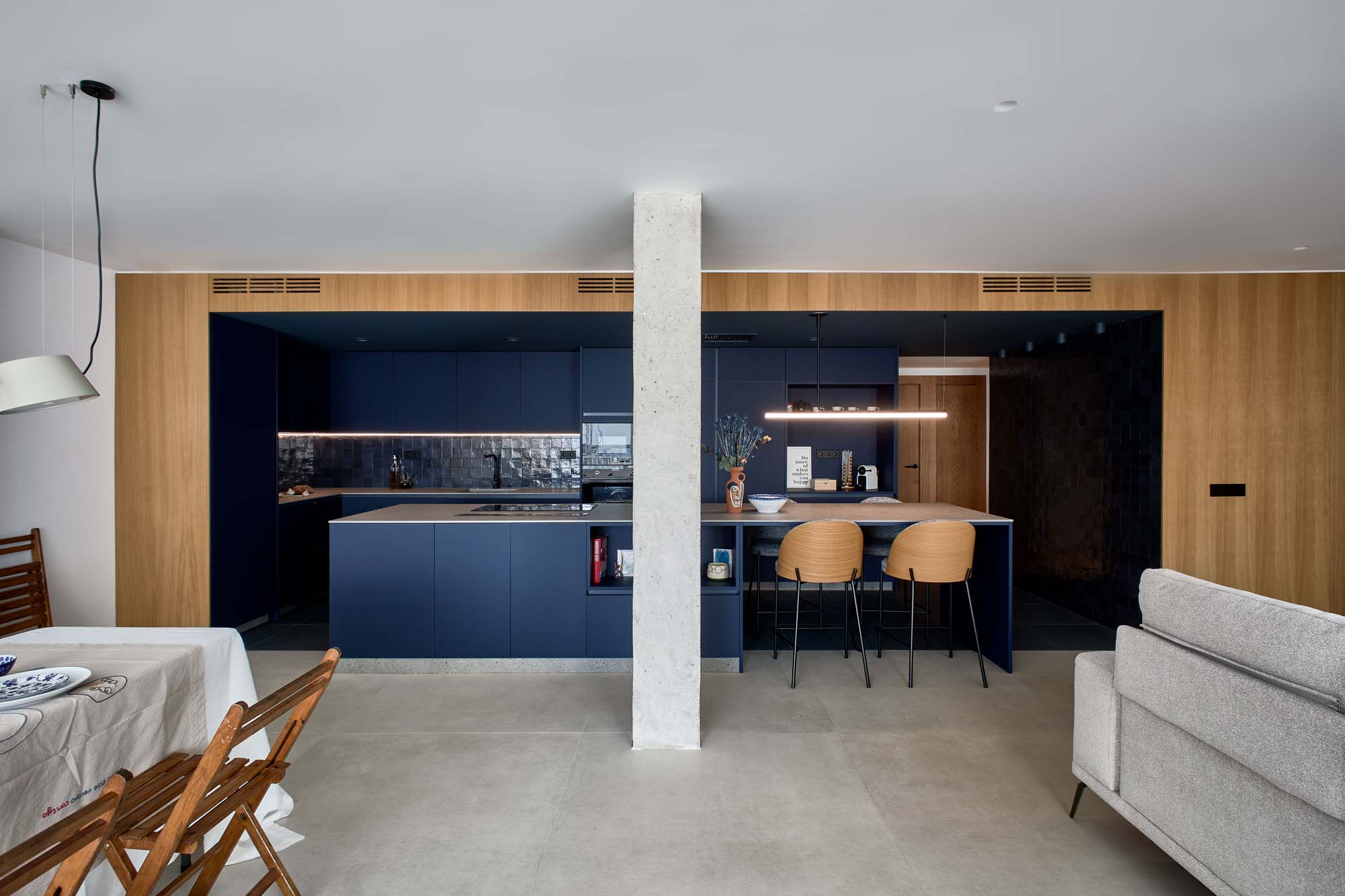 Eine Residenz im Herzen des Hafens von Almerimar präsentierte sich als fragmentierte Wohnung mit geringer Anbindung an den Außenraum. Der Eingriff von JAO Arquitectura hat ein neues Gefühl von Offenheit und Fluidität geschaffen und einen beständigen Dialog mit der Meereslandschaft etabliert. Auf einer Fläche von 178 m² gliedert sich die Umgestaltung um die sogenannte „veta“: einen zentralen Streifen, der nicht nur die Raumanordnung strukturiert, sondern auch grundlegende Funktionen wie Küche und Bäder beherbergt und zur identitätsstiftenden Achse des Hauses wird. Nördlich und südlich dieser Linie liegen zwei Makrobereiche: der offene und multifunktionale Wohnbereich mit Blick auf den Hafen sowie der zurückgezogene, private Schlafbereich, der durch Materialien neu gestaltet wurde, die visuelle Kontinuität vermitteln. Das natürliche Licht, verstärkt durch ein Beleuchtungskonzept, das in Zusammenarbeit mit Grupo Seac entwickelt wurde, intensiviert die räumliche Wahrnehmung, während die Wahl der Farben und Oberflächen den einheitlichen und anspruchsvollen Charakter der Sanierung betont.