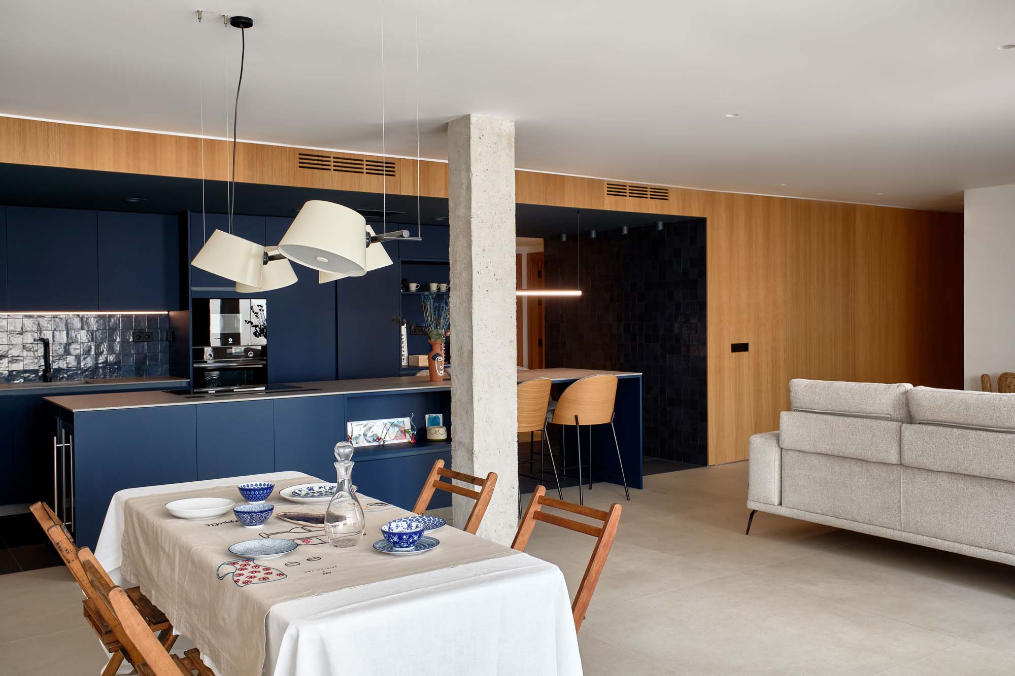 WohnungsbauProyecto Veta von JAO Arquitectura erneuert eine Residenz in Almerimar mit einer zentralen „Veta“, die die Räume verbindet. Die Marazzi-Keramiken definieren Farbnuancen und Materialien und vereinen neutrale Töne mit intensiven Blautönen zu einer zeitgenössischen Atmosphäre.