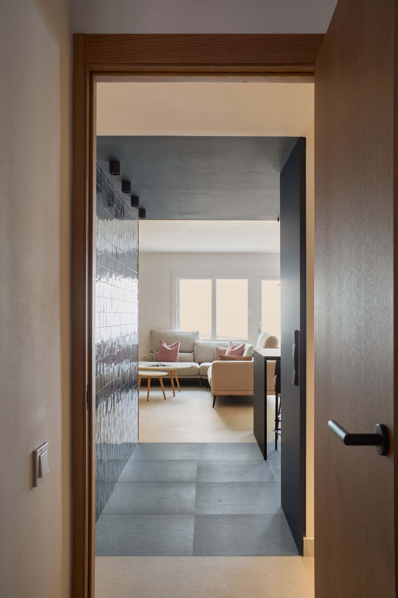 Die Materialrecherche spielte eine entscheidende Rolle bei der Neugestaltung der Wohnräume. Die Architekten wählten die Marazzi-Oberflächen als zentrales Element, um ästhetische Kohärenz, Funktionalität und Beständigkeit sicherzustellen. „Unser Büro“, Ana Sara Hidalgo Peregrín, Architektin bei JAO Arquitectura, „war stets der Überzeugung, mit Materialien zu arbeiten, die mediterrane Werte verkörpern. Die Keramik ist ein Material, das in unseren Projekten bei Böden, Wandverkleidungen oder Fliesen Verwendung findet. Es ist perfekt für Projekte in dieser Region, in der hohe Luftfeuchtigkeit und hohe Temperaturen herrschen. Es ist zudem ein kulturelles Element: Ein Material, das mit einfacher Reinigung und Wartung verbunden wird und in vielerlei Hinsicht zeitlos ist.