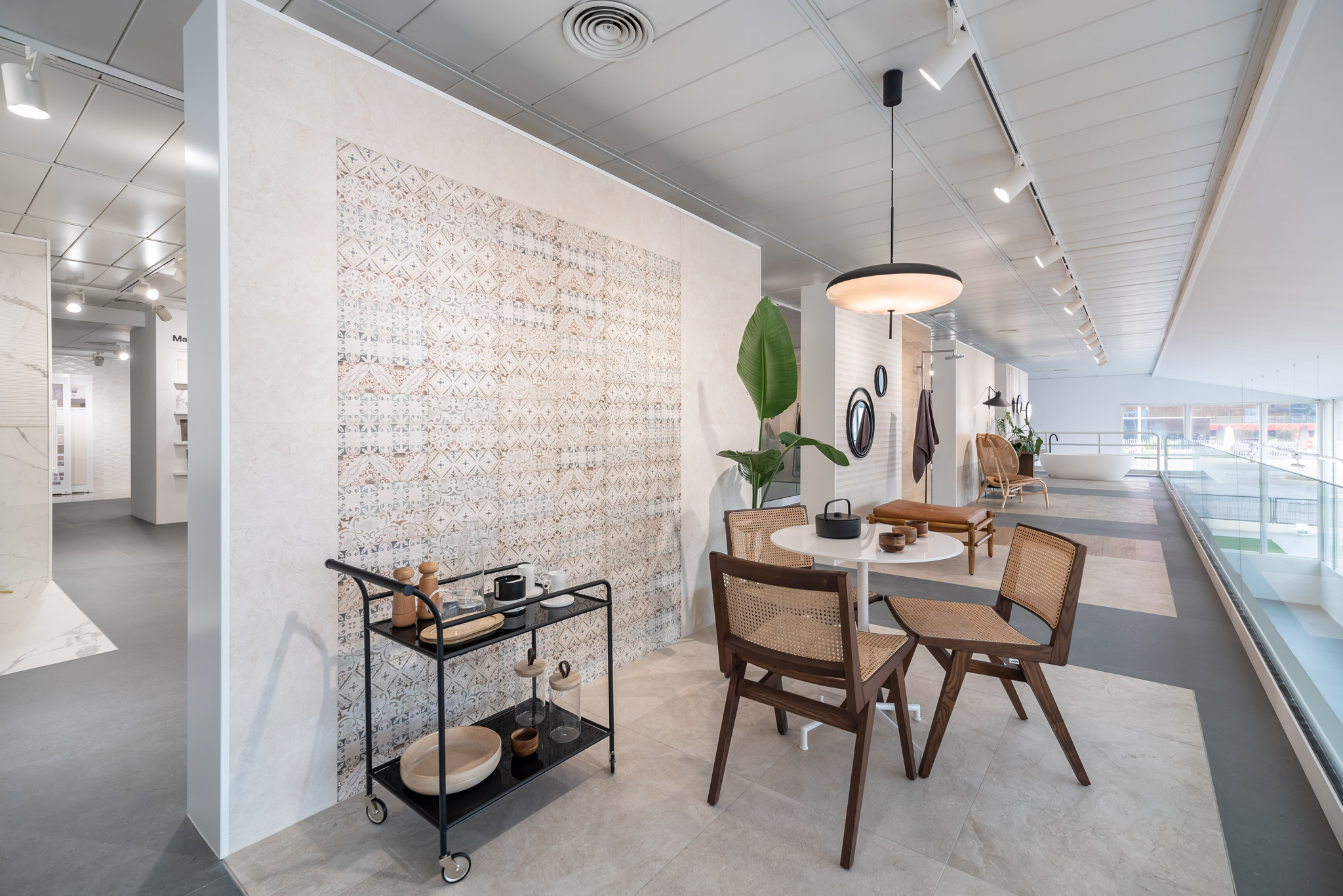Der neue, über 1.000 qm große Raum ist auf zwei Geschossen angelegt und bietet Besuchern einen Überblick über die erstklassigen Materialien und die wegweisende Kreativität der Marke. Er veranschaulicht die Einzigartigkeit der breiten Produktpalette von Marazzi und seine starke Ausrichtung auf Forschung und Innovation.