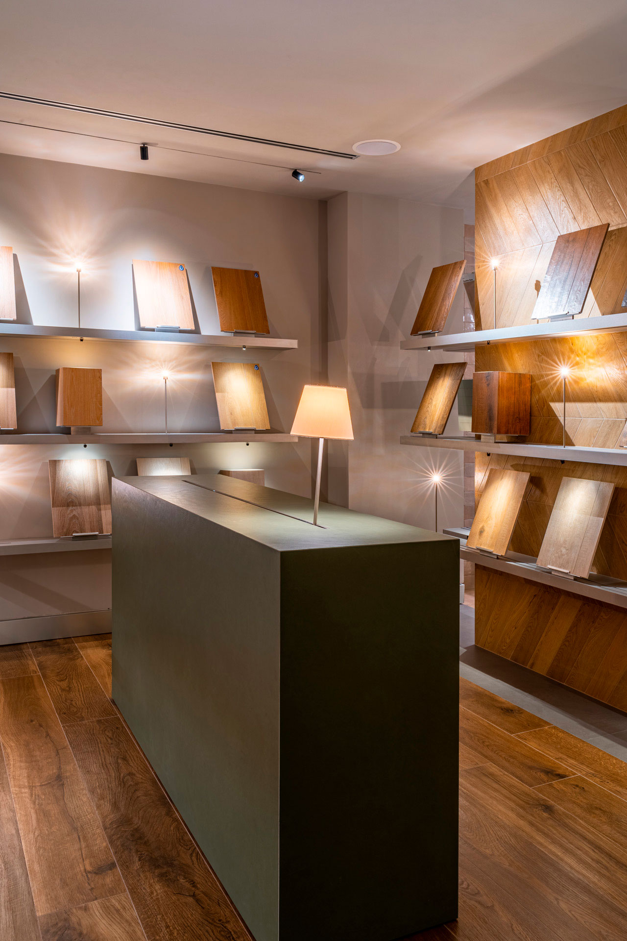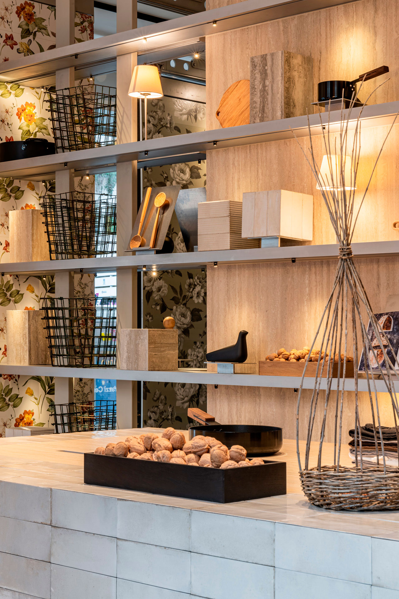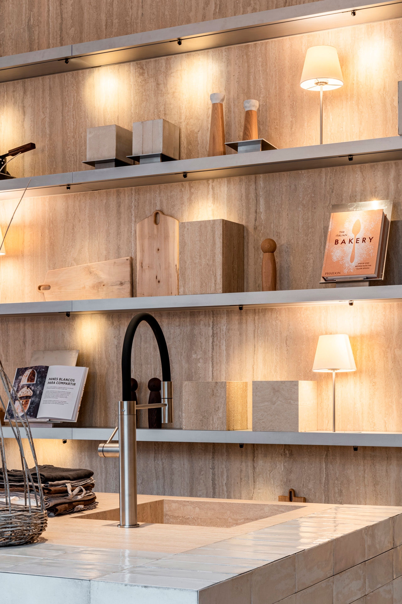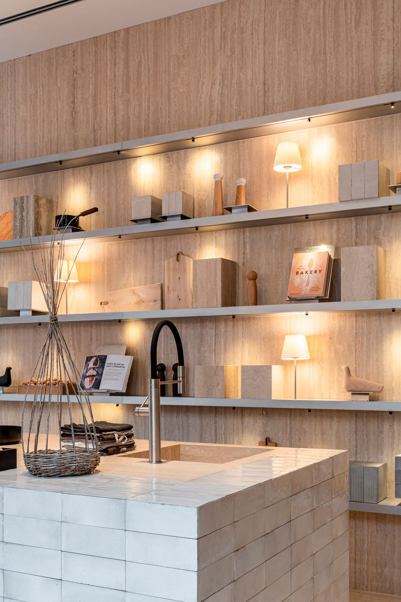 Der Entwurf stammt vom Büro ACPV ARCHITECTS Antonio Citterio Patricia Viel, das den 300 m2 großen Showroom mit Blick auf die zentralen Straßen Calle Serrano und Calle Juan Bravo im Zentrum der spanischen Hauptstadt neu gestaltet hat, um das umfangreiche Fliesensortiment von Marazzi unterzubringen.